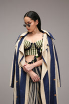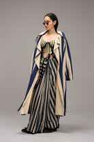 Egg-Shell Corset with Trench & Dual Striped Saree Set (3 PCS)