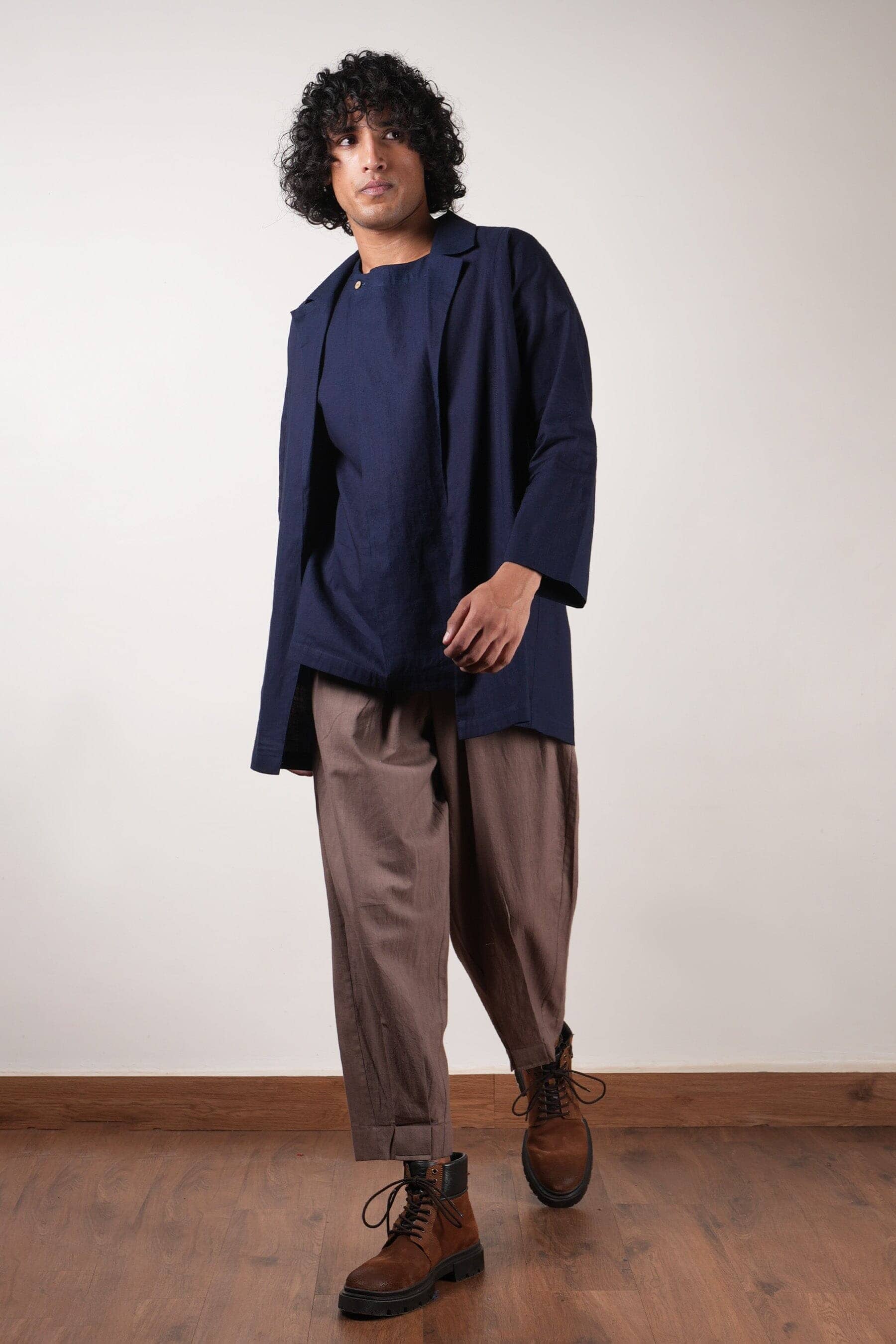 Overlap buttoned t-shirt with elasticated trousers and short jacket all made in handspun cotton. This set comes in 3 pcs.