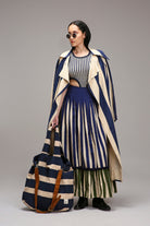 Egg-Shell Trench Bodysuit Dual Striped Skirt Set (3 PCS)