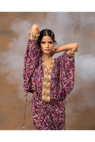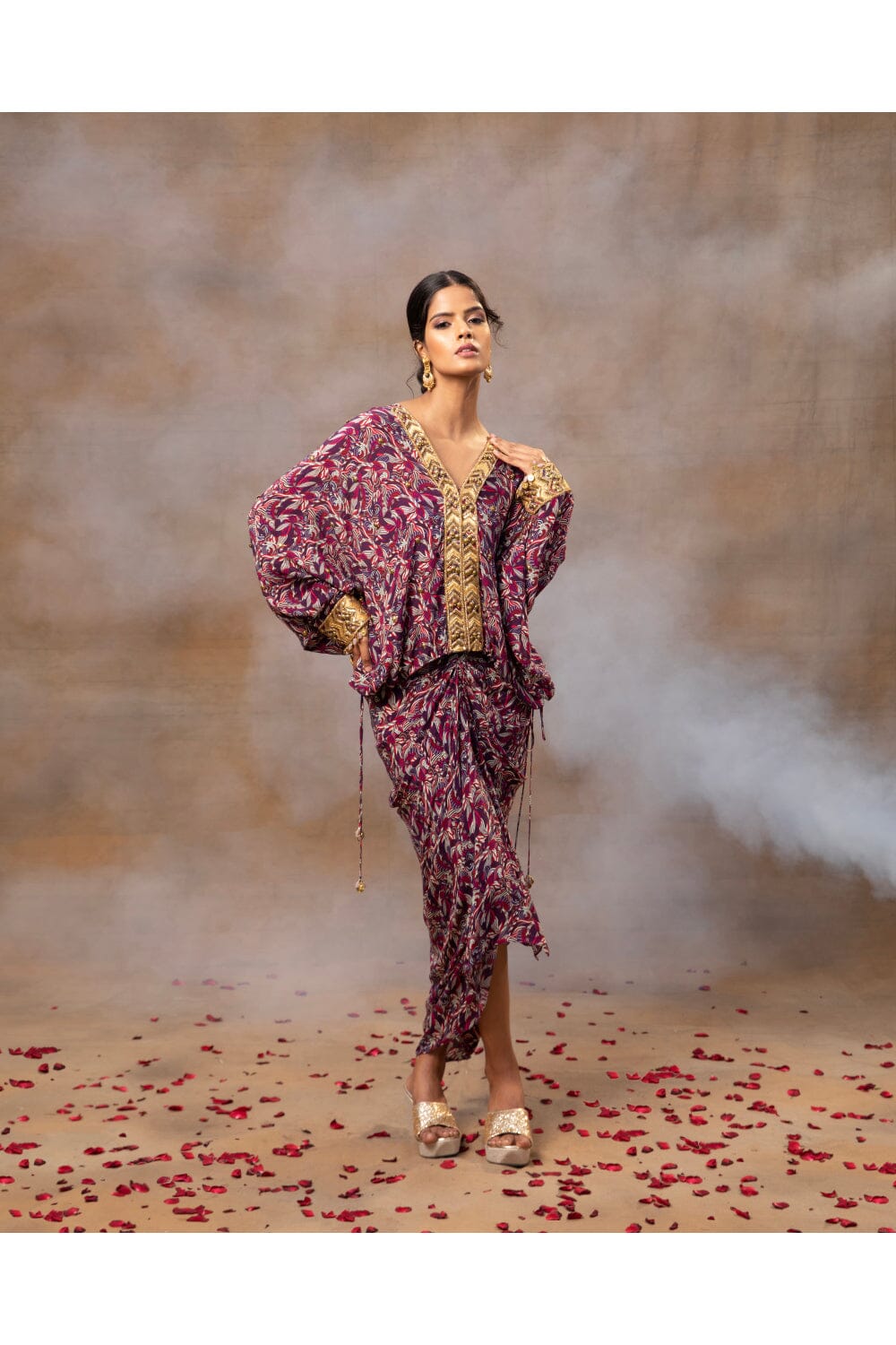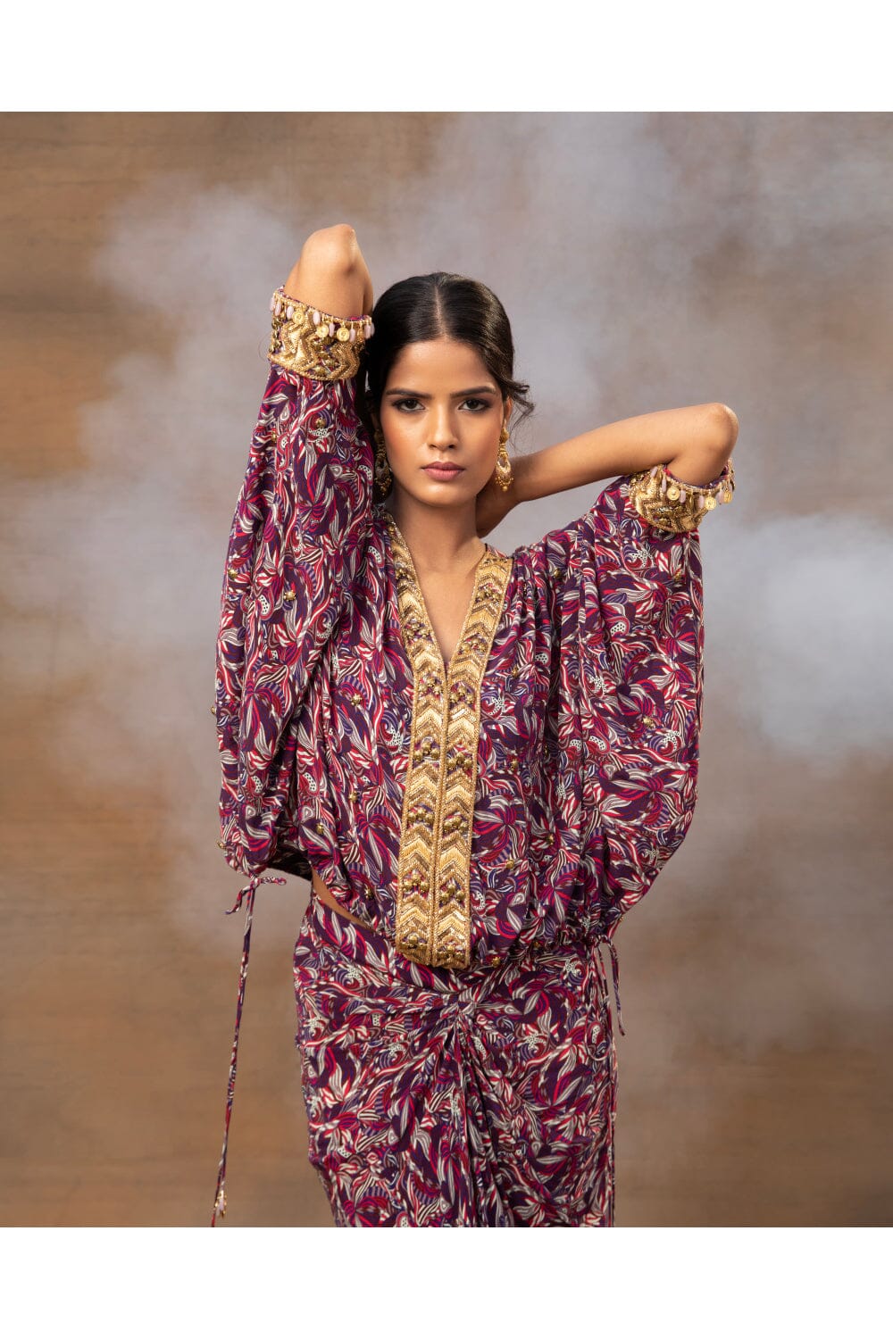 ¡Presentamos nuestro conjunto de coordinación con estampado geométrico morado, una deliciosa combinación de elegancia y alegría! Este moderno conjunto presenta una blusa corta con mangas de murciélago y un intrincado bordado en el centro del frente y los puños, que irradia elegancia. Combinado con una elegante falda drapeada, este conjunto garantiza un look súper divertido y elegante para cualquier ocasión, ¡haciéndote el centro de atención dondequiera que vayas! Abrace el encanto de los patrones geométricos y haga una declaración de moda audaz con este exquisito conjunto de coordinación.