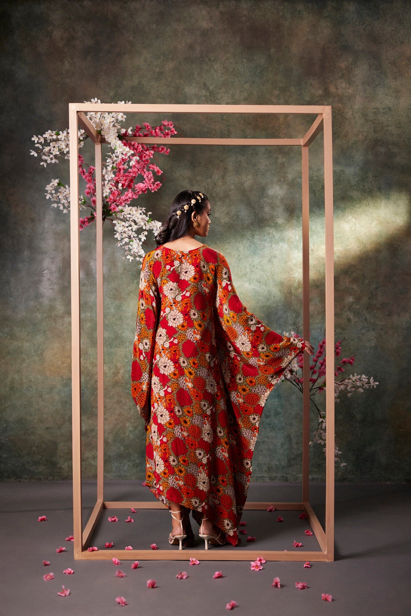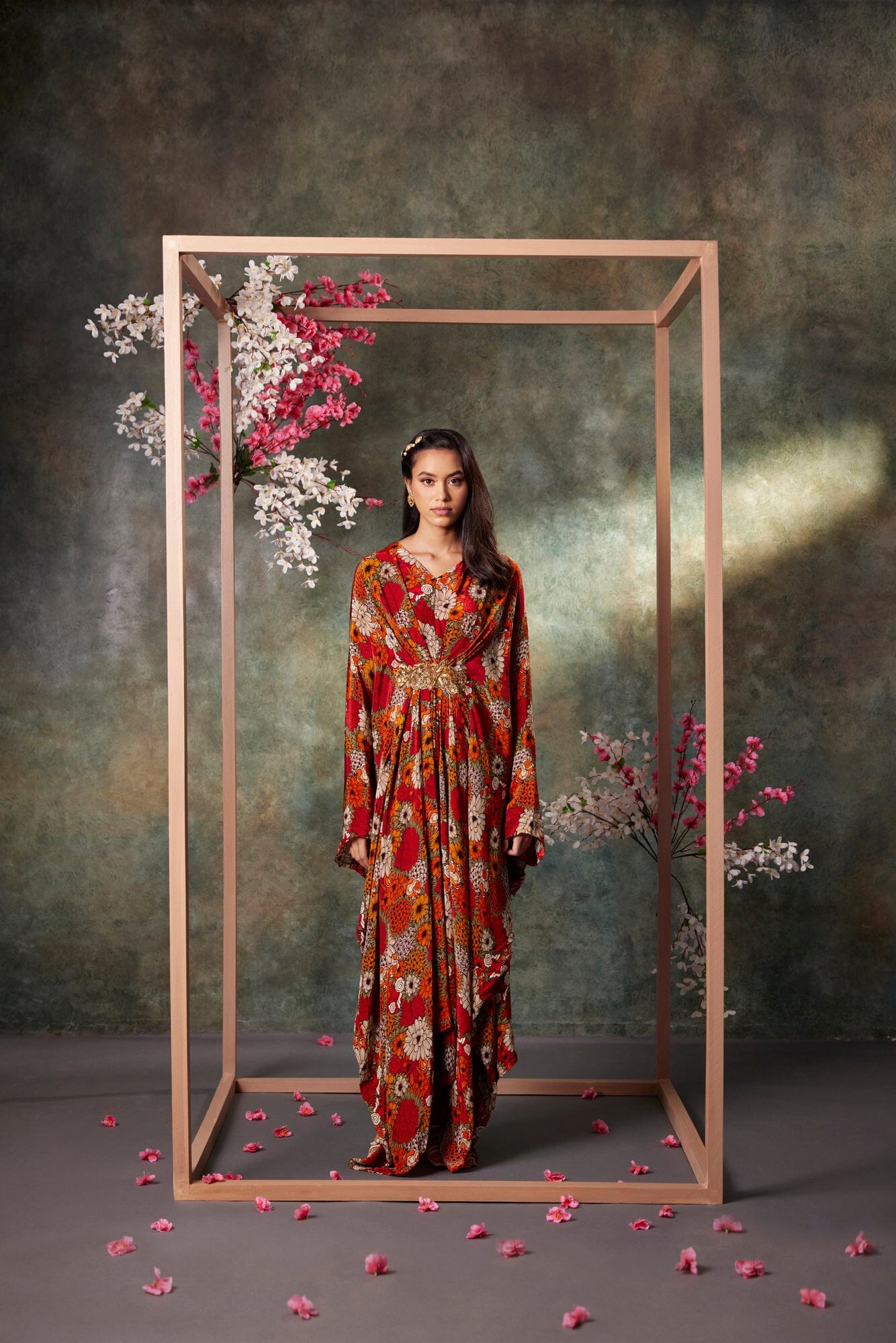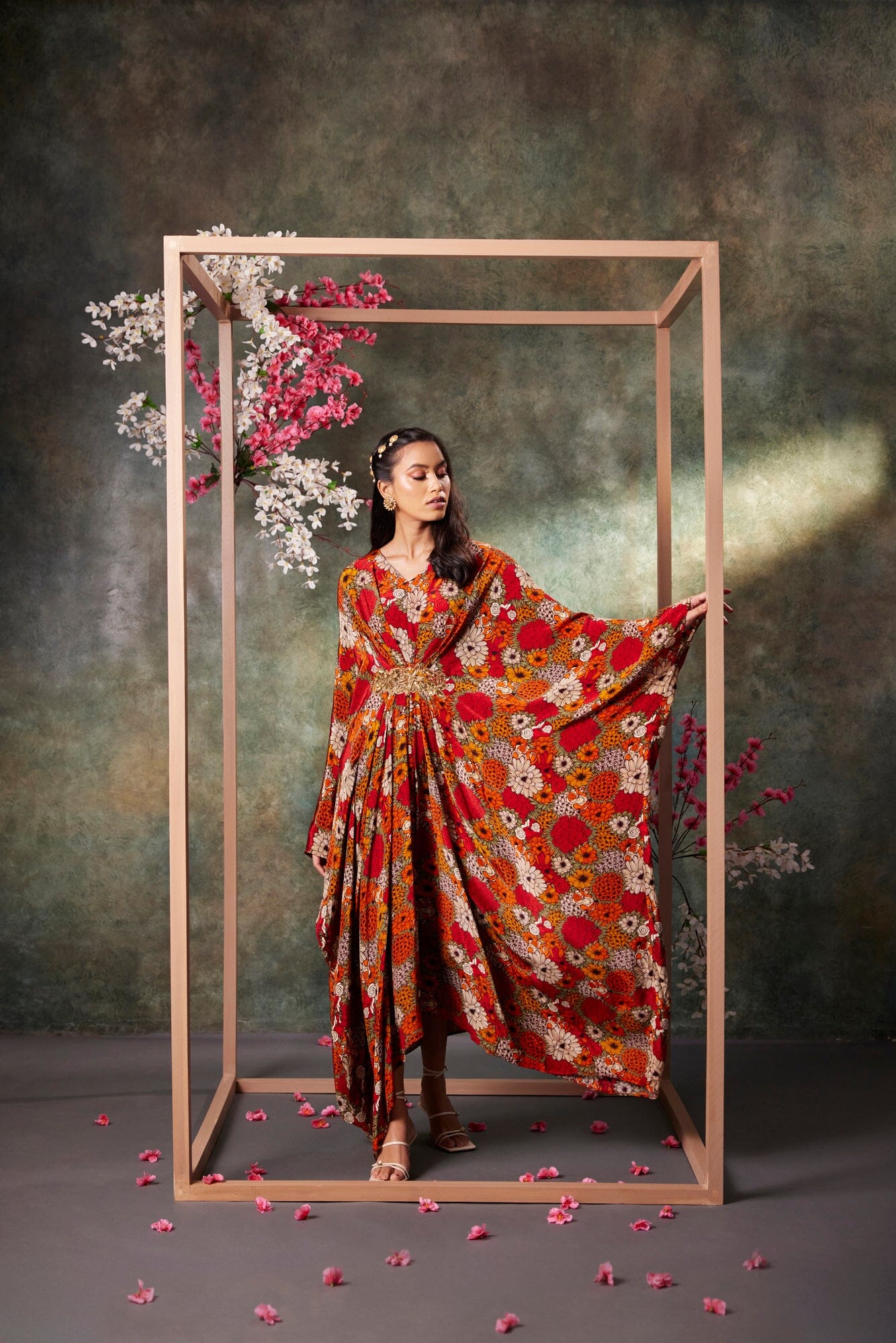 Orange Printed Anarkali And Dupatta Set With Embroidery