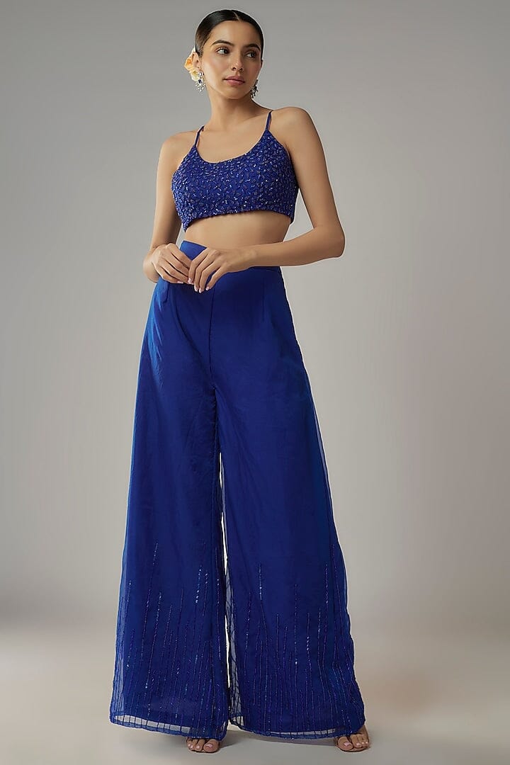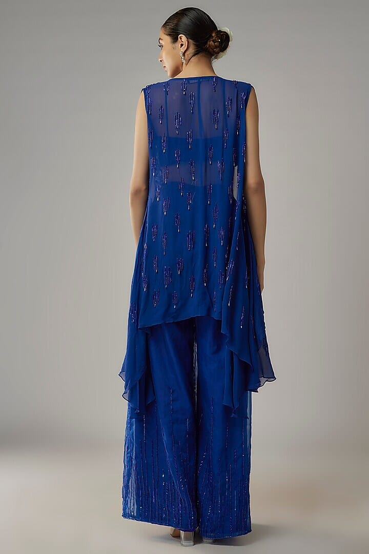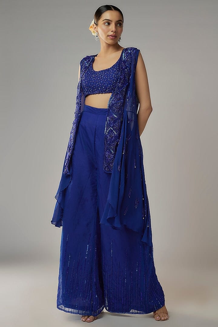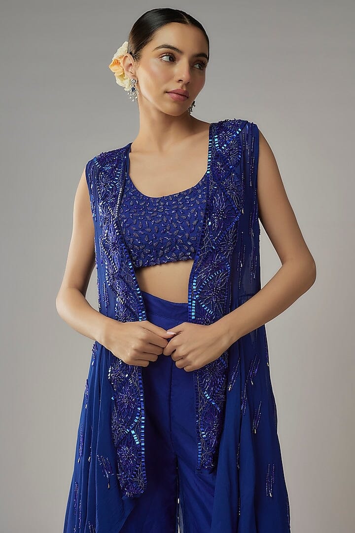 Royal Embroidered Blue Choli Pants And Jacket Set