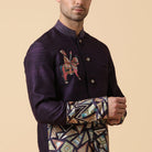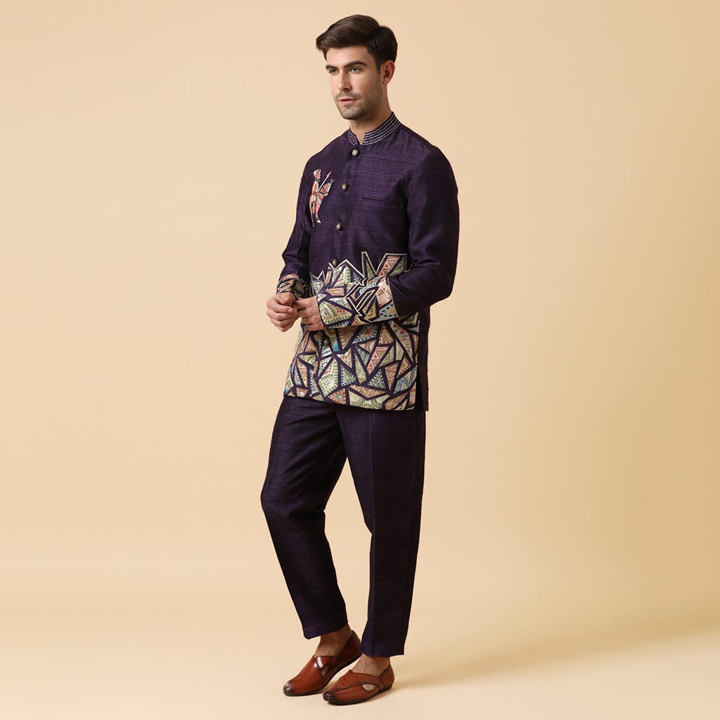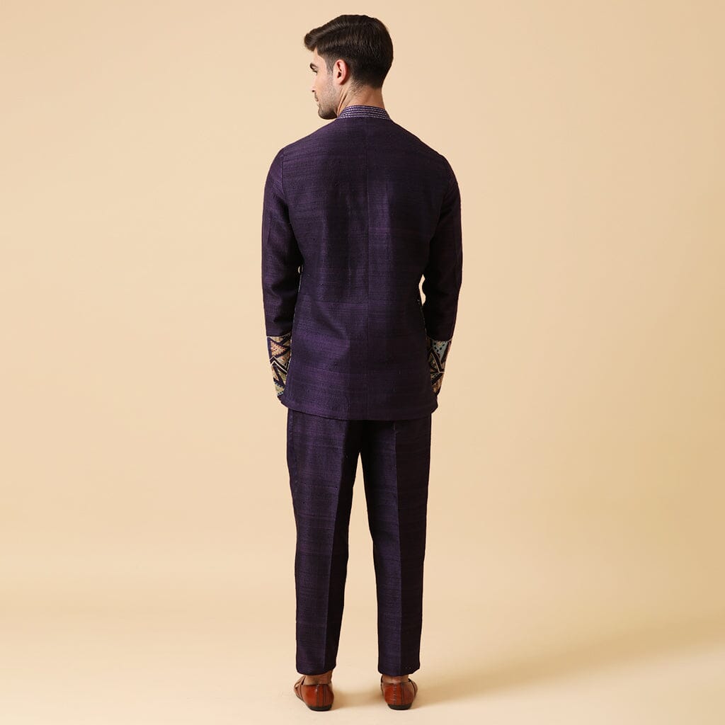 Conjunto bandhgala bordado morado