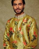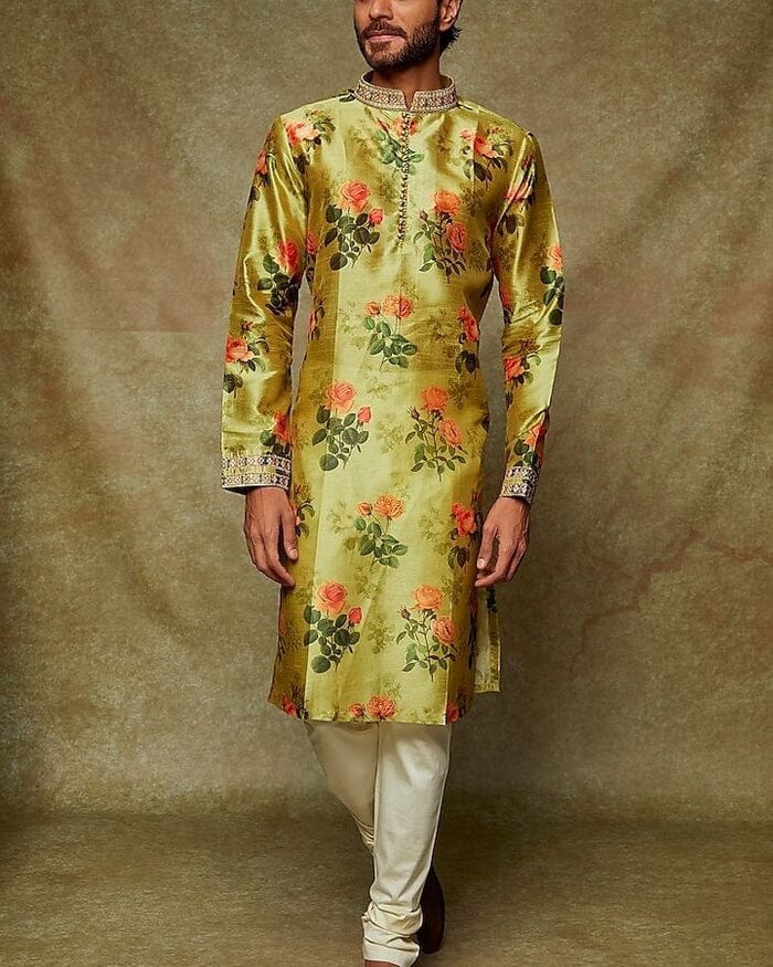 Featuring a yellow floral kurta in silk base with resham embroidery. This contains only one piece.