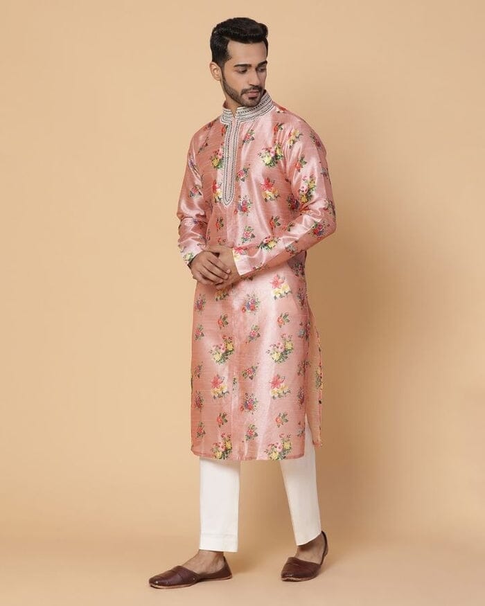 Featuring a blush pink kurta in silk base with resham and zari embroidery, including floral digital print. This contains only one piece.
