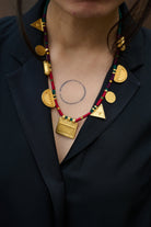 Collar hecho a mano chapado en oro de 22 quilates con colgantes geométricos y amuleto tribal intrincadamente detallado