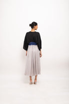 Capa alta y baja en negro, azul y negro con fruncido azul en la cintura, lo que la hace completamente ajustable y de tamaño libre. Ropa de fiesta, informal, de oficina, de día, de vacaciones.