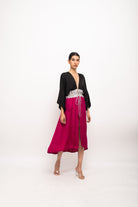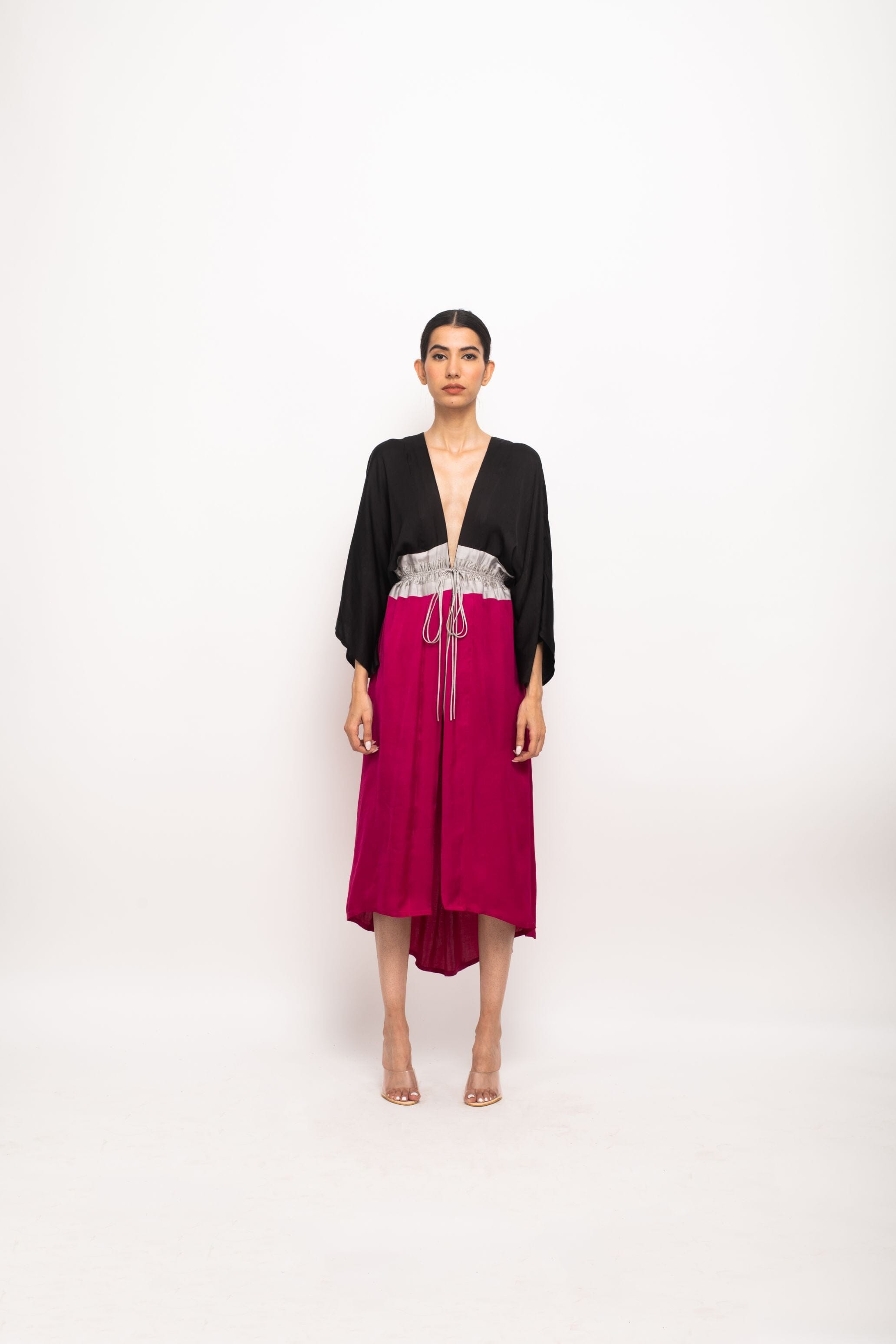 Capa alta y baja en negro, gris y vino con fruncido gris en la cintura, lo que la hace completamente ajustable y de tamaño libre. Ropa de fiesta, informal, de oficina, de día, de vacaciones.