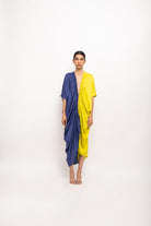 Capa azul neón con fruncido en la parte delantera que se puede ajustar según el gusto personal. Ropa de fiesta, informal, de oficina, de día, de vacaciones.