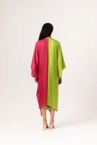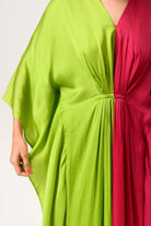 Vestido Maxi Kaftan Verde Vino con manga 3/4. Seda Sostenible.