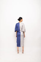 Vestido caftán ajustado al cuerpo gris azulado con fruncido en la parte delantera que hace que su longitud sea totalmente ajustable según el gusto personal. Ropa de fiesta, informal, de oficina, de día, de vacaciones.