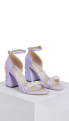 Wholly hand-embellished pair of heels, delicately laden with pearls, is handcrafted in a soft lilac satin. She’s embroidered, inspired by the concept of wishing upon a dandelion in pop colours and glass beads, that take to the wind and spread out as pearly puffballs. The D'orsay counter cups the ankle and she’s finished with an elegant open toe strap.