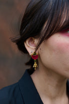 Pendientes hechos a mano con baño de oro de 22K y tapas de cadena en piedras rosas y verdes