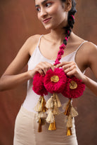 Lana, flor de gota, borla de badla, cauríes, hilo de algodón, ghungroos de metal