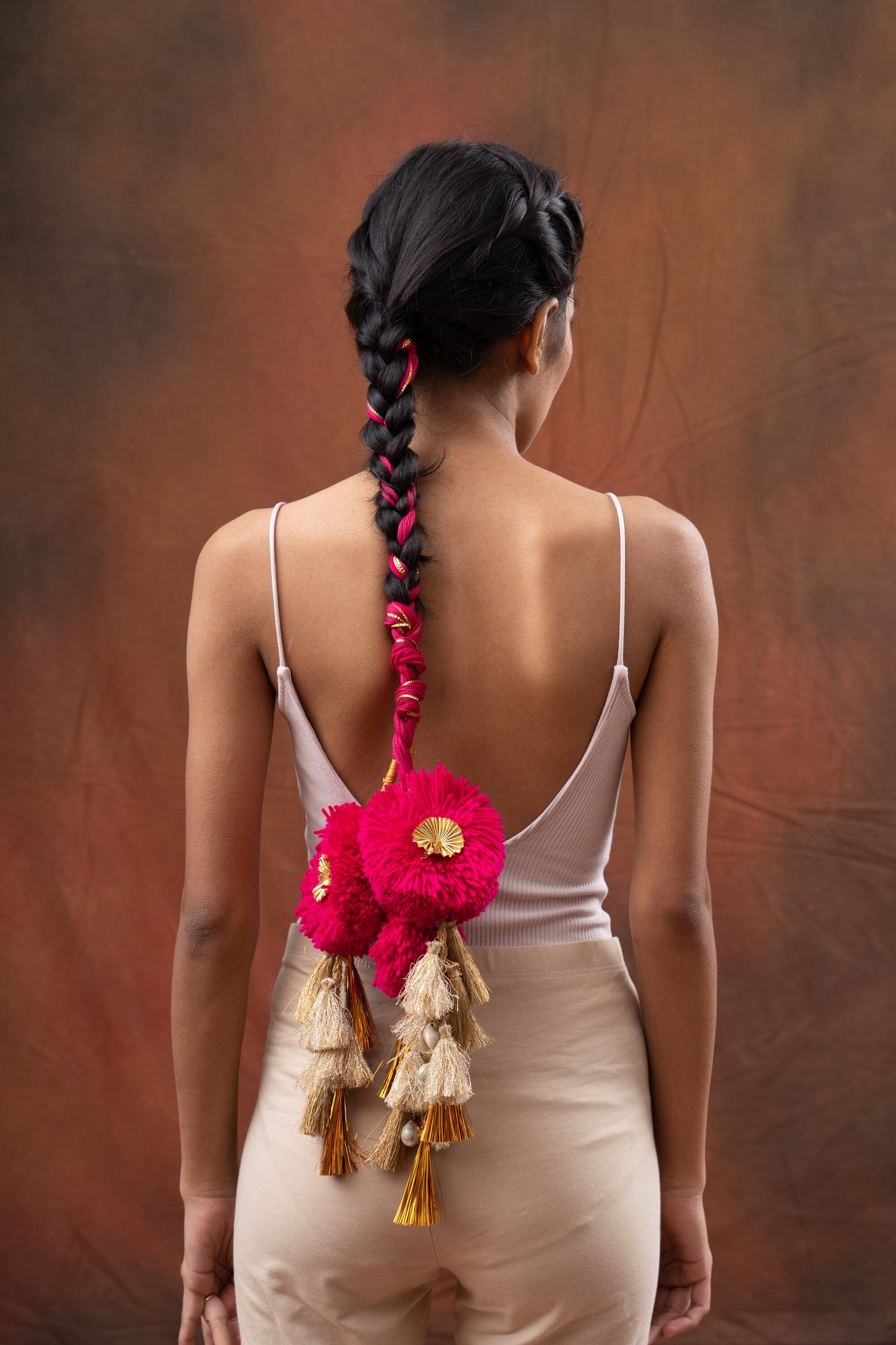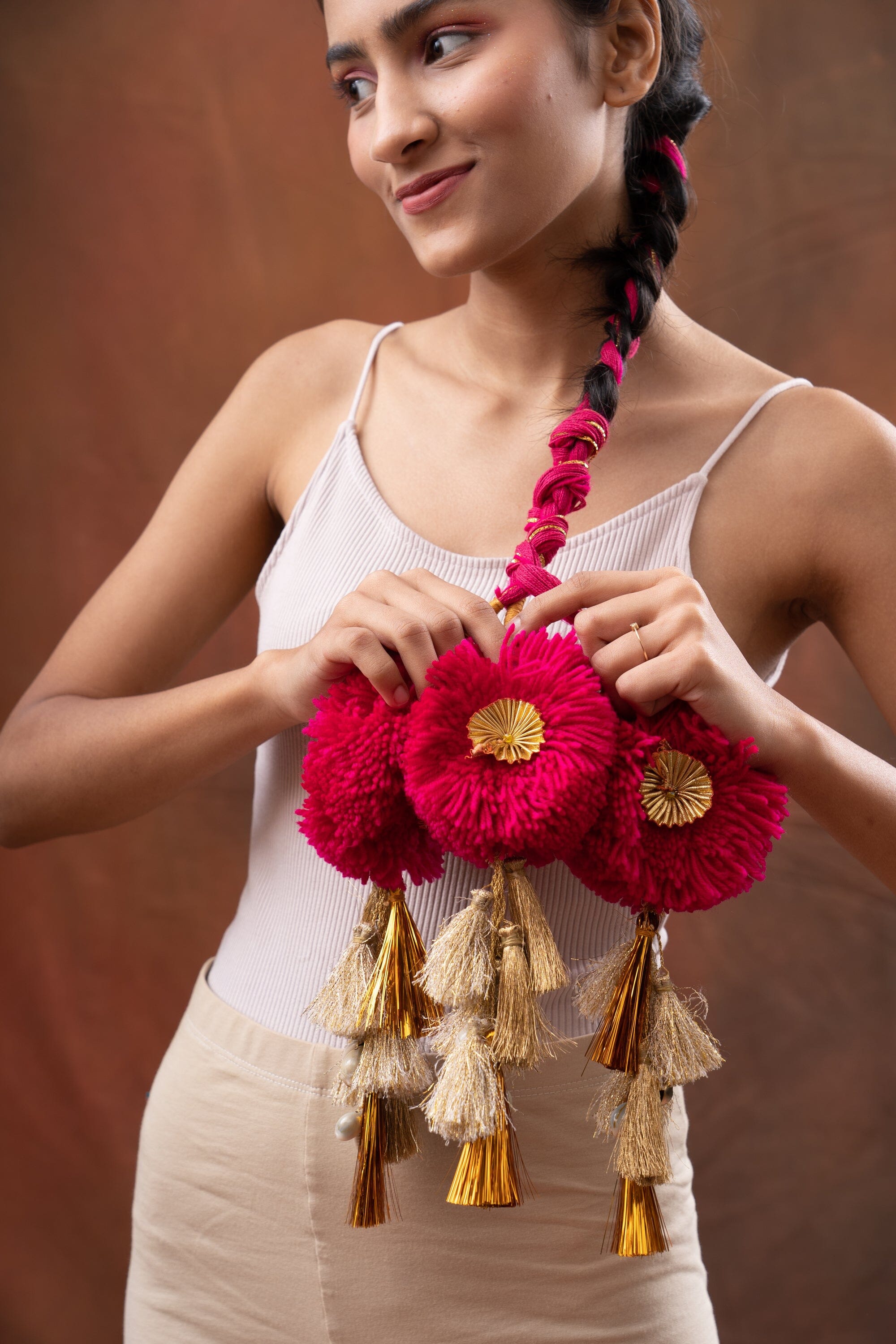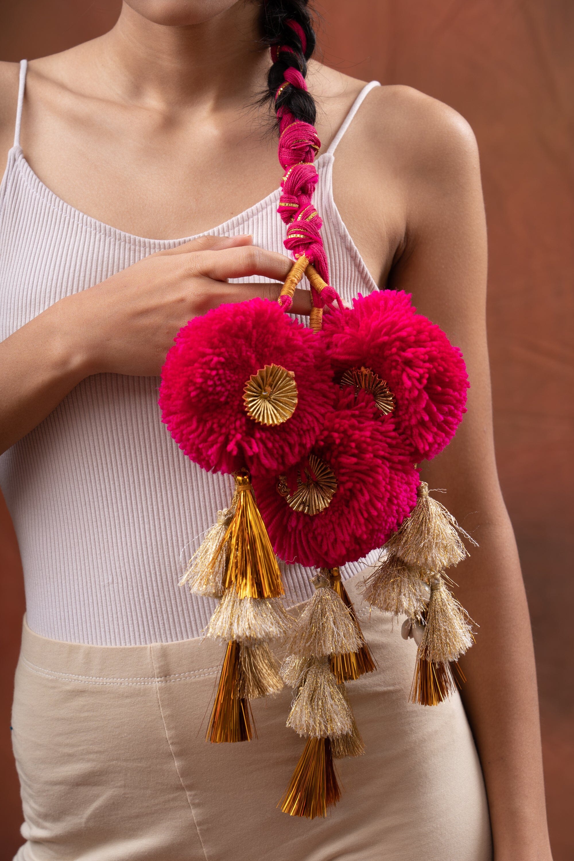 Pompones atrevidos y hermosos unidos en un parandi para lograr esa apariencia atrevida y ecléctica.