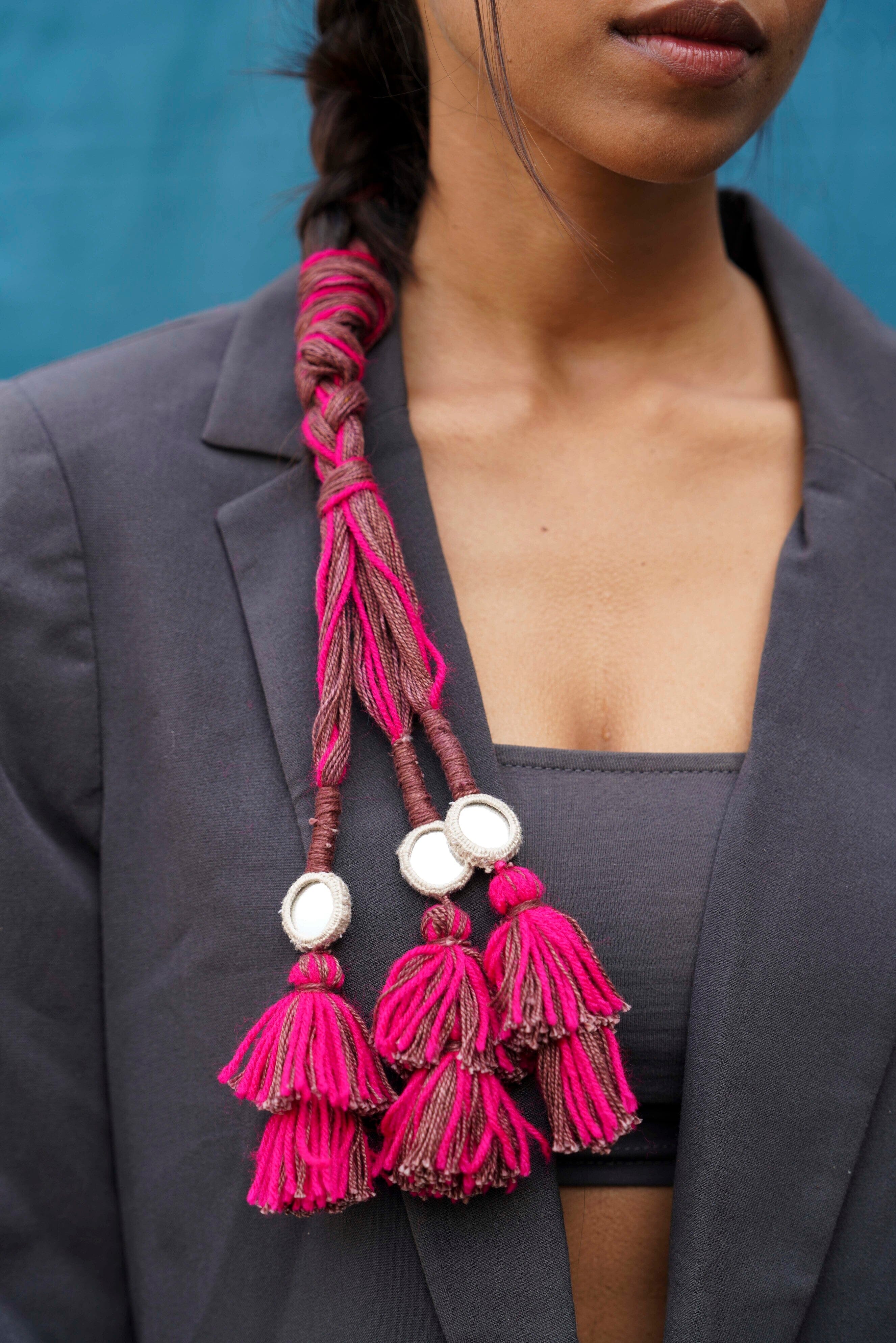Parandi de espejo intrincadamente bordado a mano y ensartado con borlas.