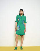 Green Firefly Dress: Collared dress with sequins detailing