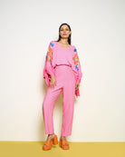 Pink Butterfly shirt: Shirt with exaggerated sleeves and sequins detailing