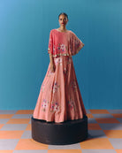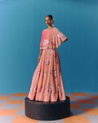 The Twinkle Lehenga Set: Its a crepe Lehenga with hand embroidered floating bunches of flower , paired with a georgette hand embroidered cape as a blouse.