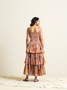 Crafted from luxurious cotton mul, our Goldie Tier dress has a smocked bodice, ruffled-tier skirt, and lace trim along the ruffles. The vintage-inspired maxi dress features hand painted floral motifs.