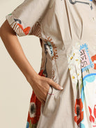 An easy shirt style dress featuring inverted pleats for a cinched waist. The print features hand-painted enchanted motifs crafted on soft cotton.