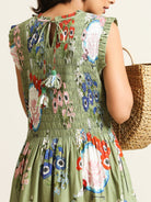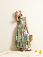 The Juniper Dress features a unique hand rendered print, adding a touch of nostalgia and uniqueness to your wardrobe. The elasticated smocking offers a comfortable and relaxed fit, while the maxi style adds elegance. Perfect for a special occasion or everyday wear.