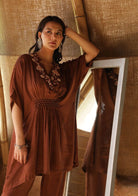 Confeccionado en tejido modal, este vestido incorpora un fruncido en forma de panal delicadamente metido en una elegante silueta de caftán. Se combina con pantalones rectos y viene en un juego de 2.