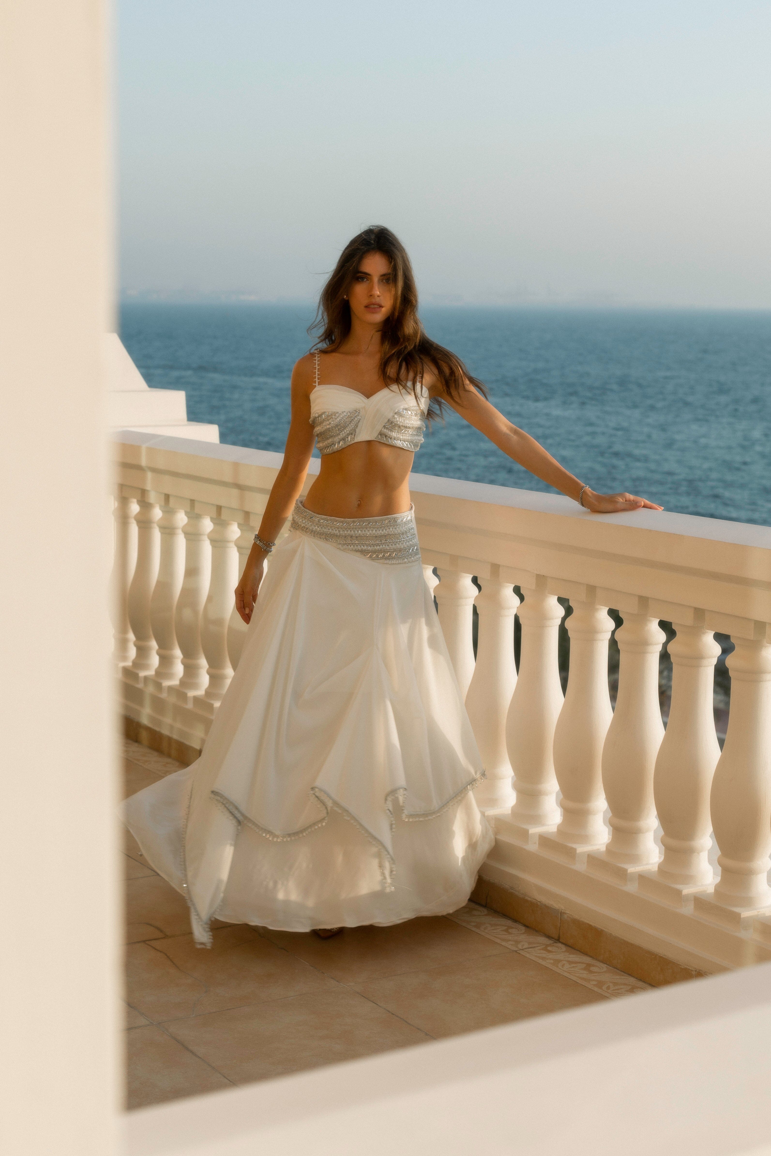 Un top finamente adornado combinado con una falda a capas. Un conjunto exquisito que combina un estilo atemporal con un estilo moderno, diseñado para causar sensación en cualquier ocasión.