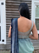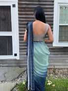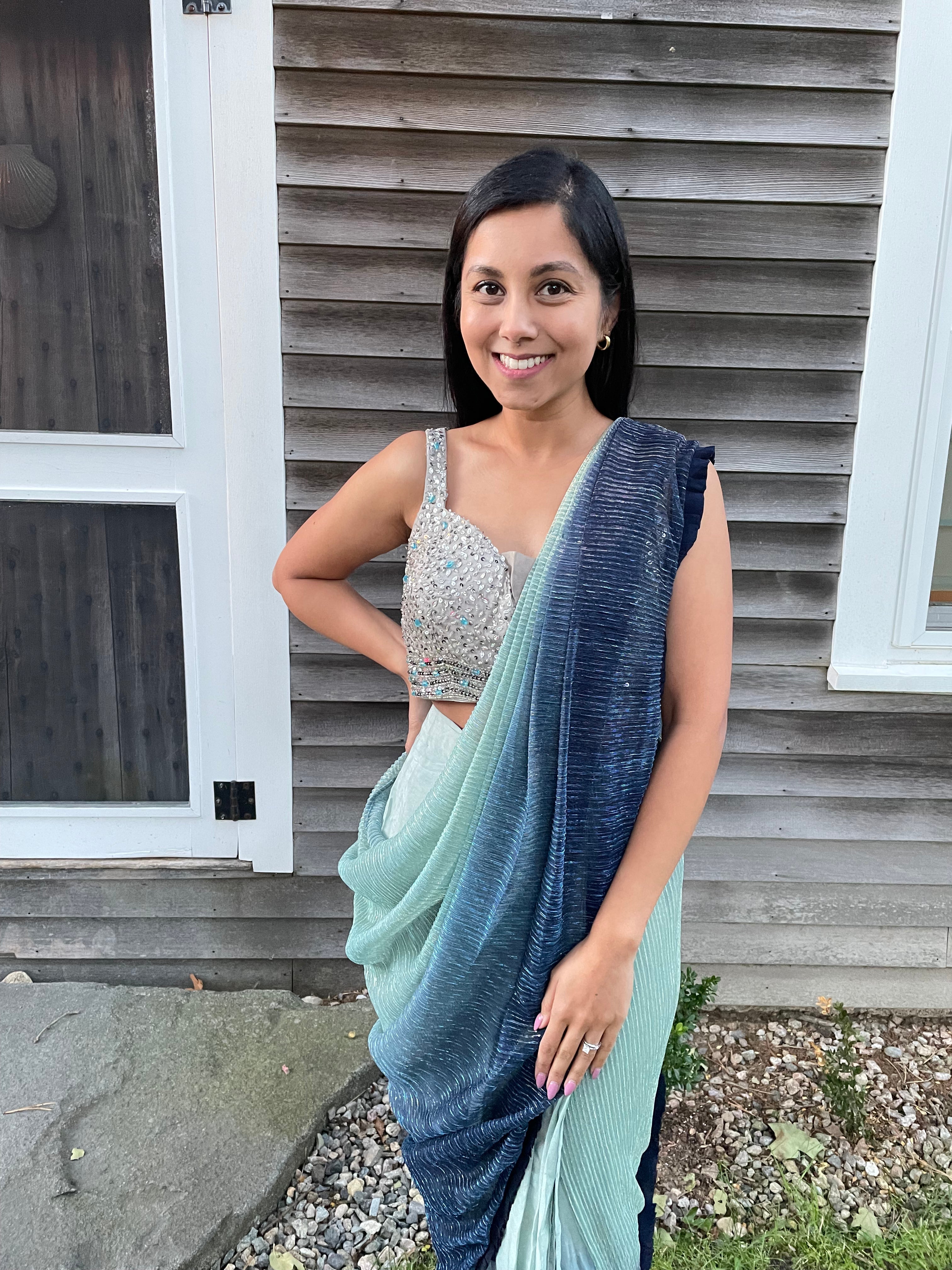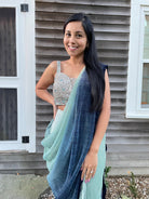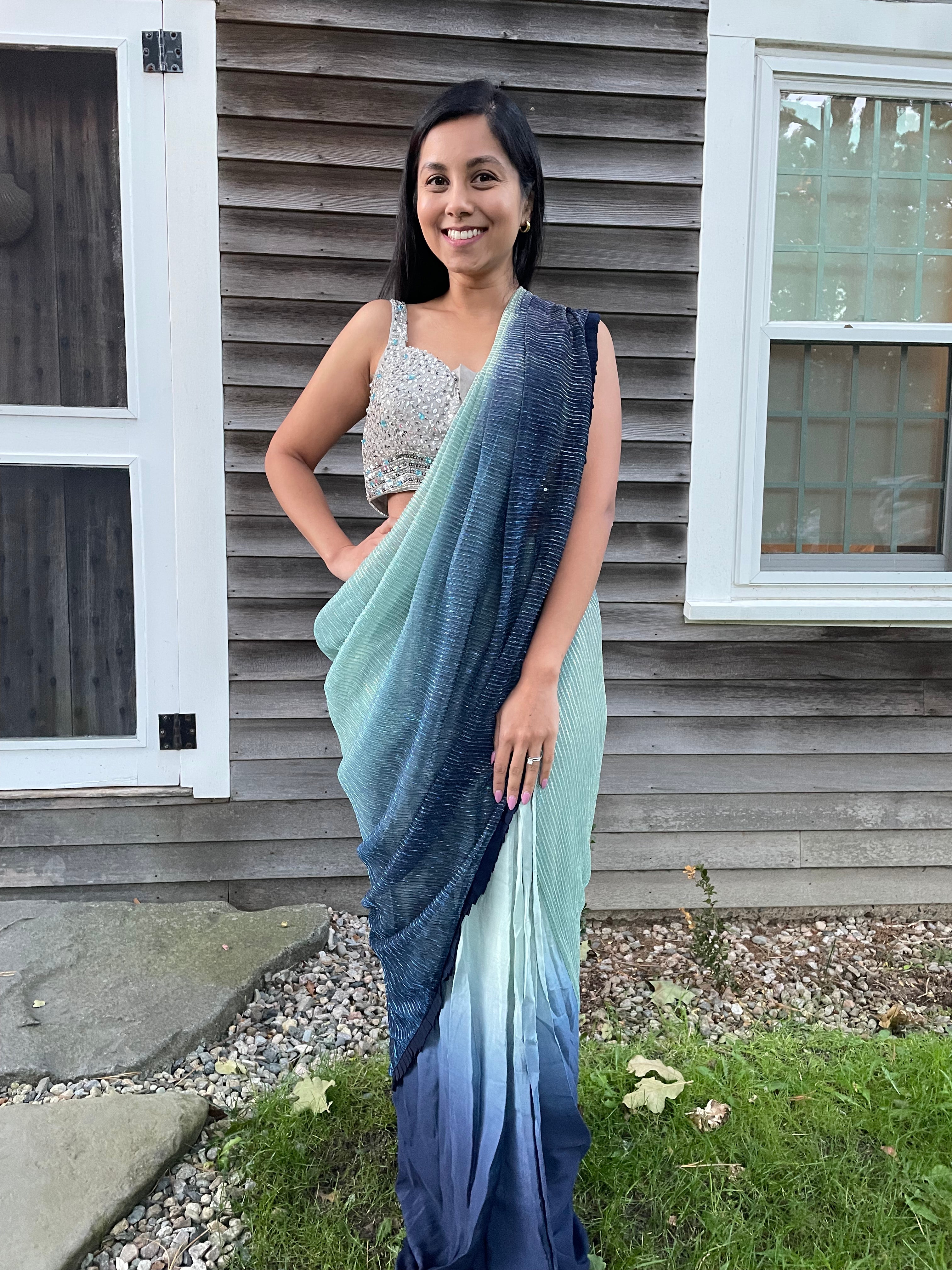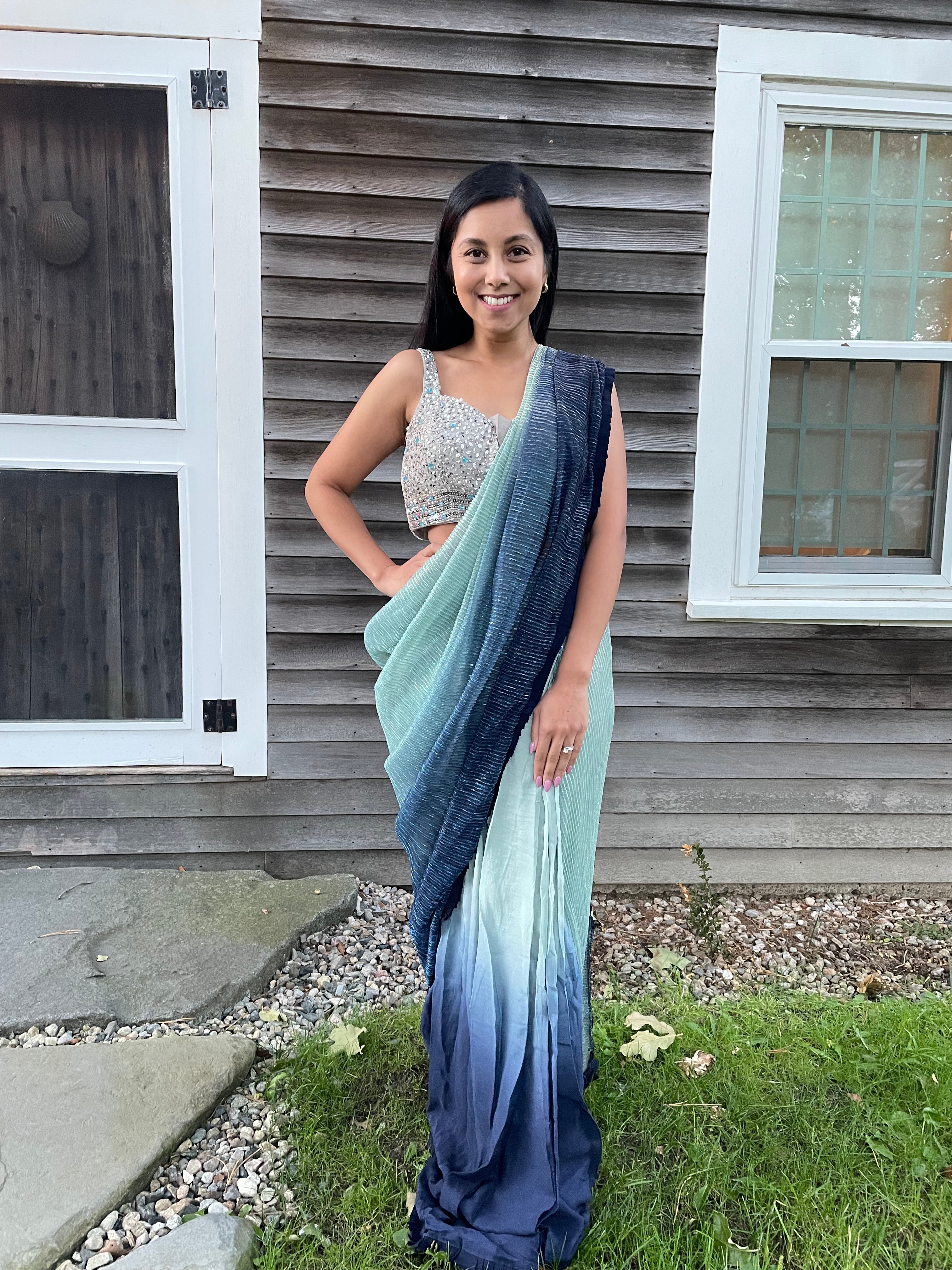 Lycra triturada en sari drapeado sombreado y combinado con un top.
