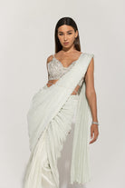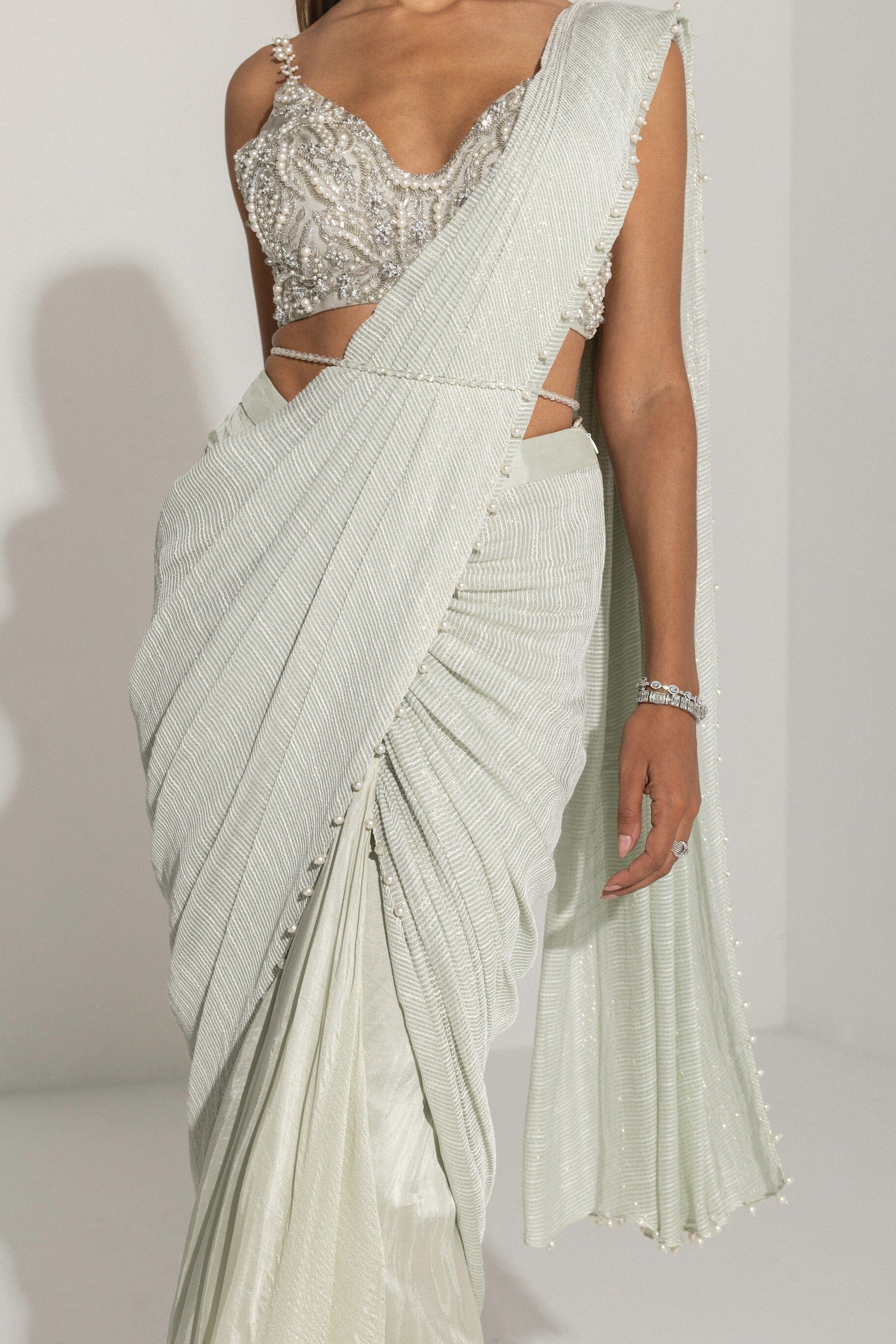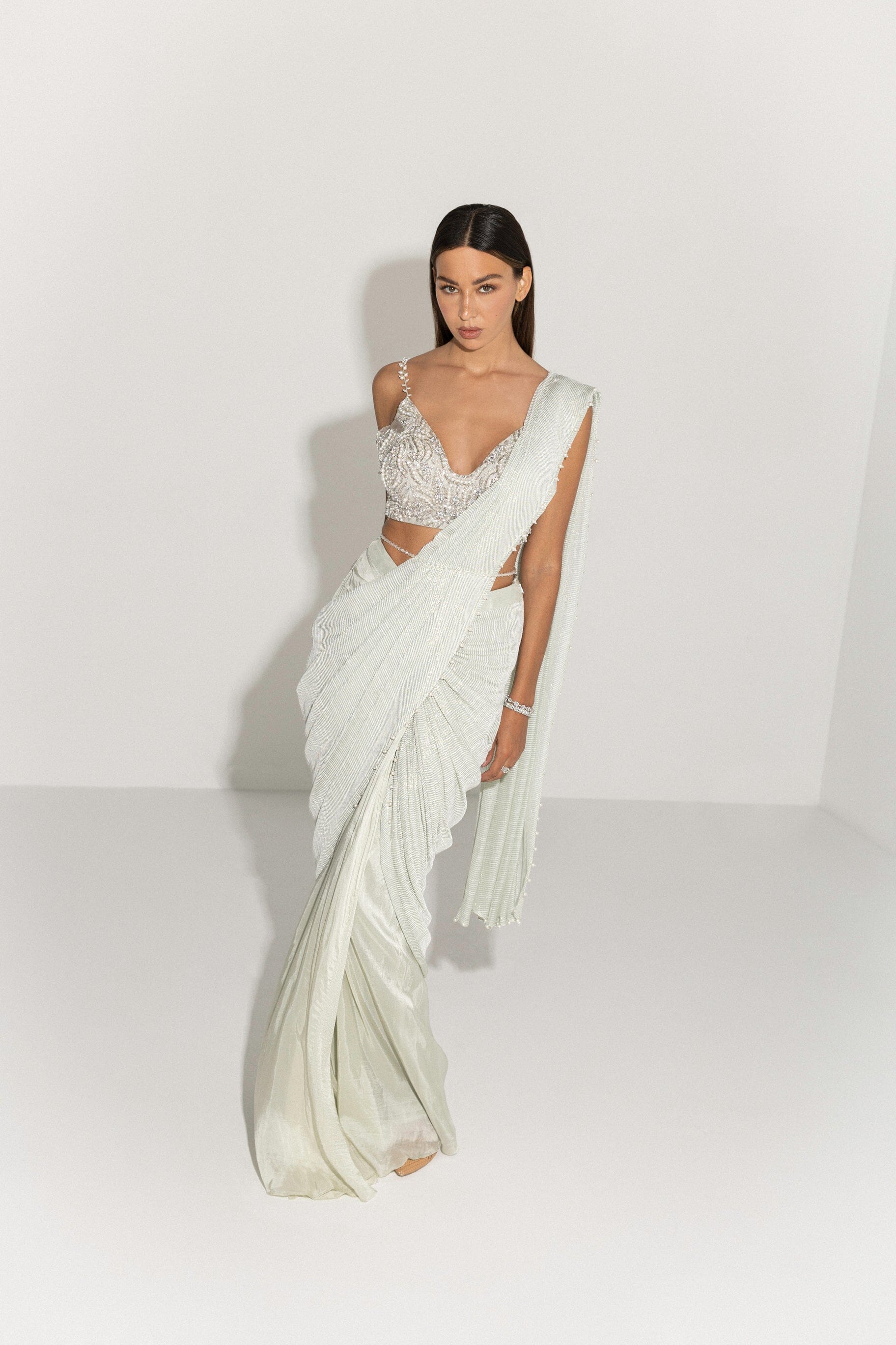 An ombré panelled skirt in pure georgette paired with a cutwork top (organza) and dupatta (soft net).