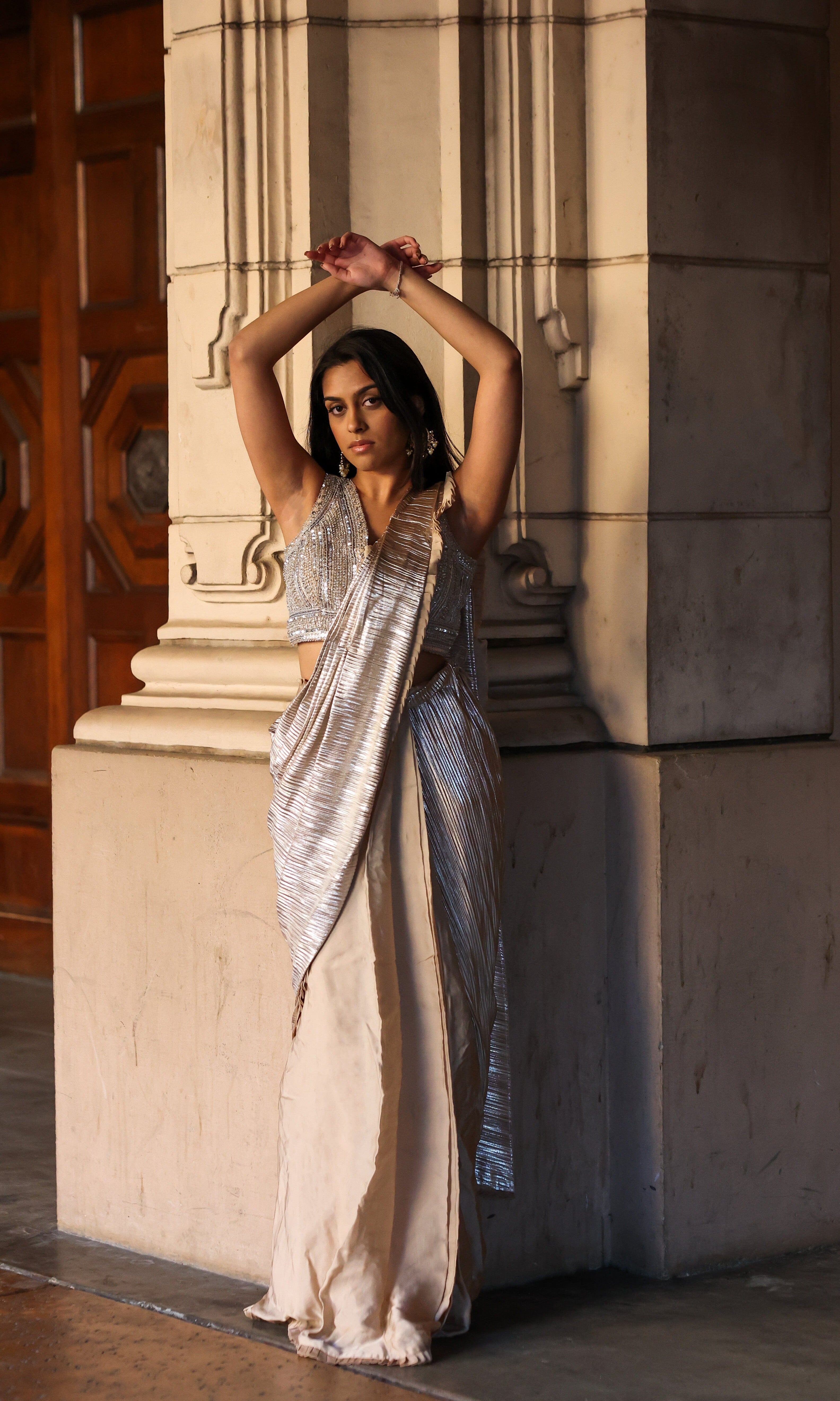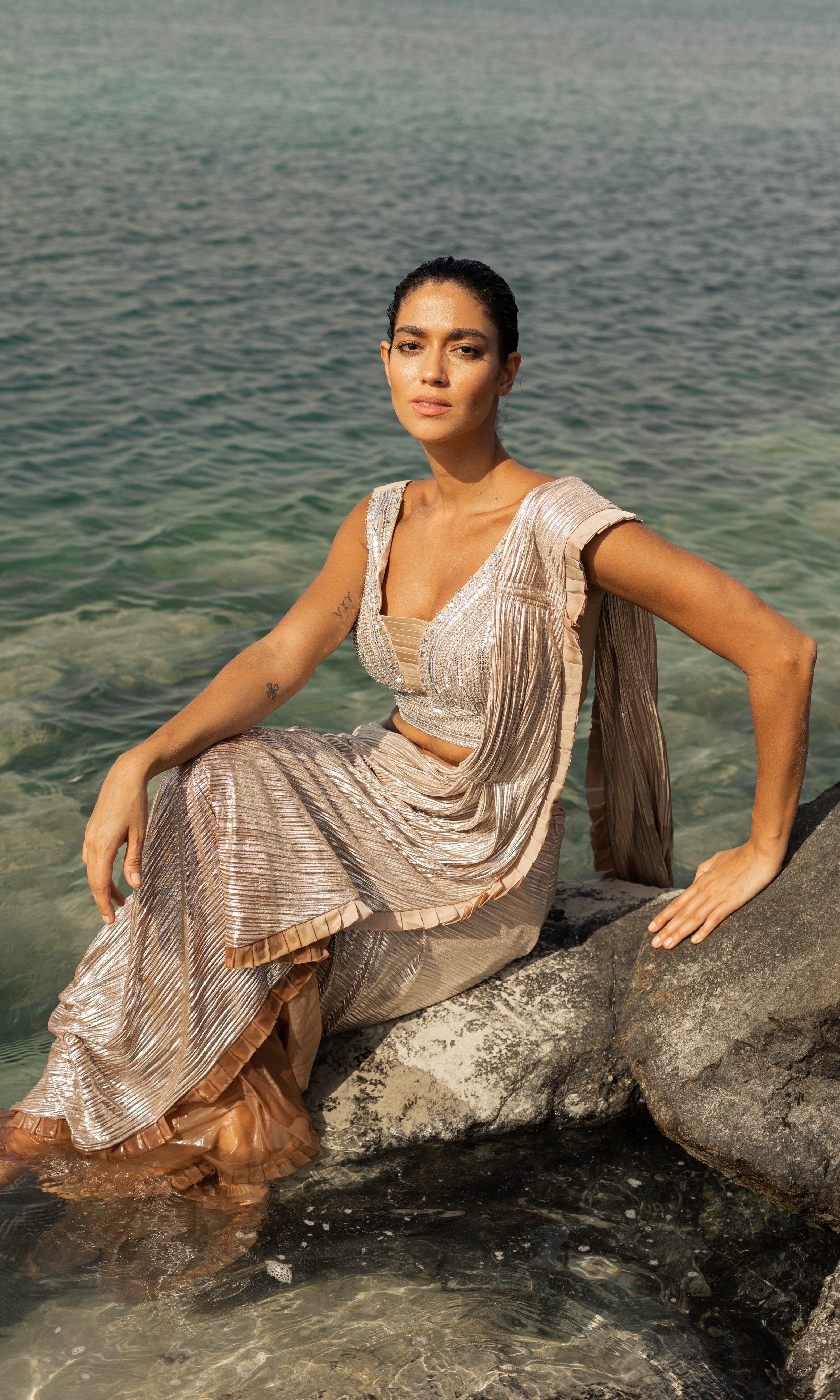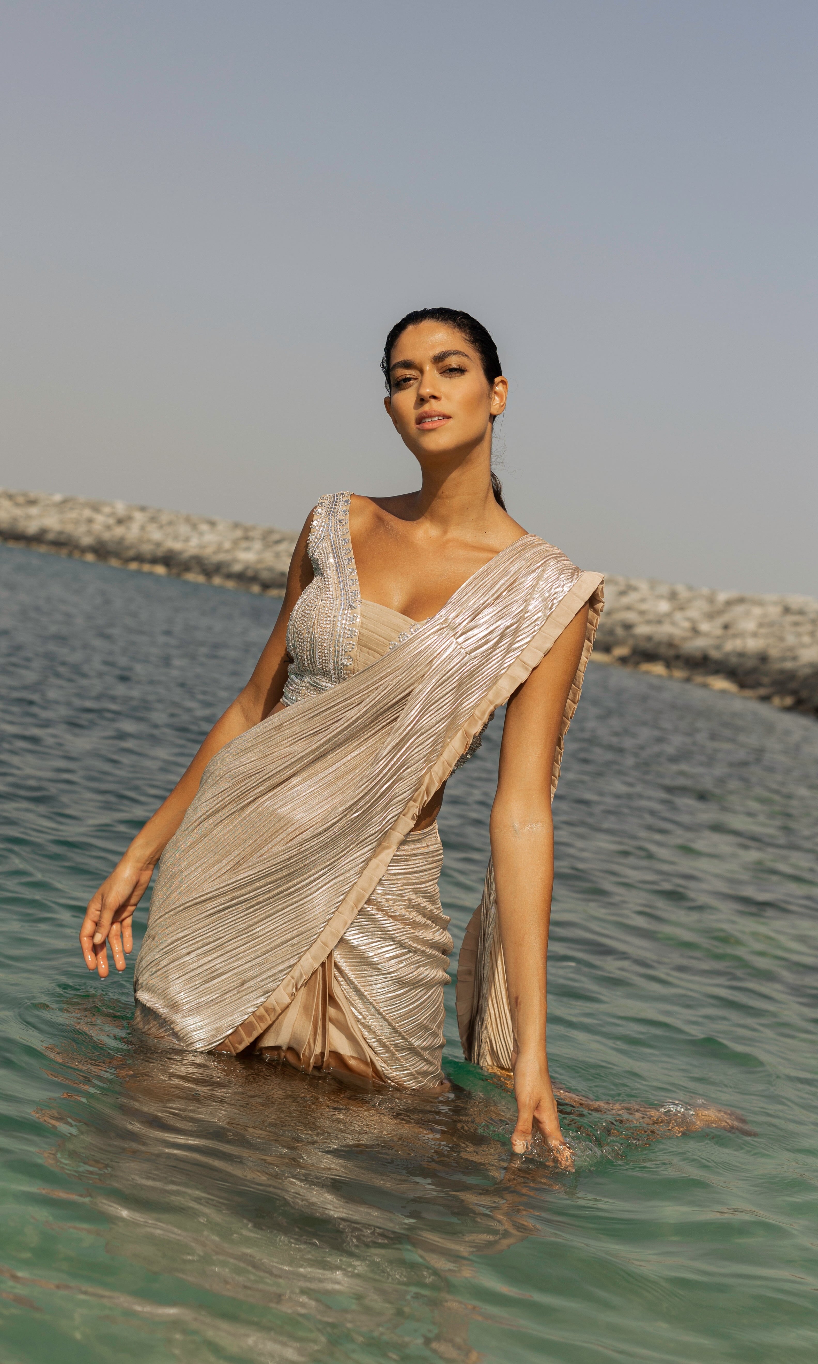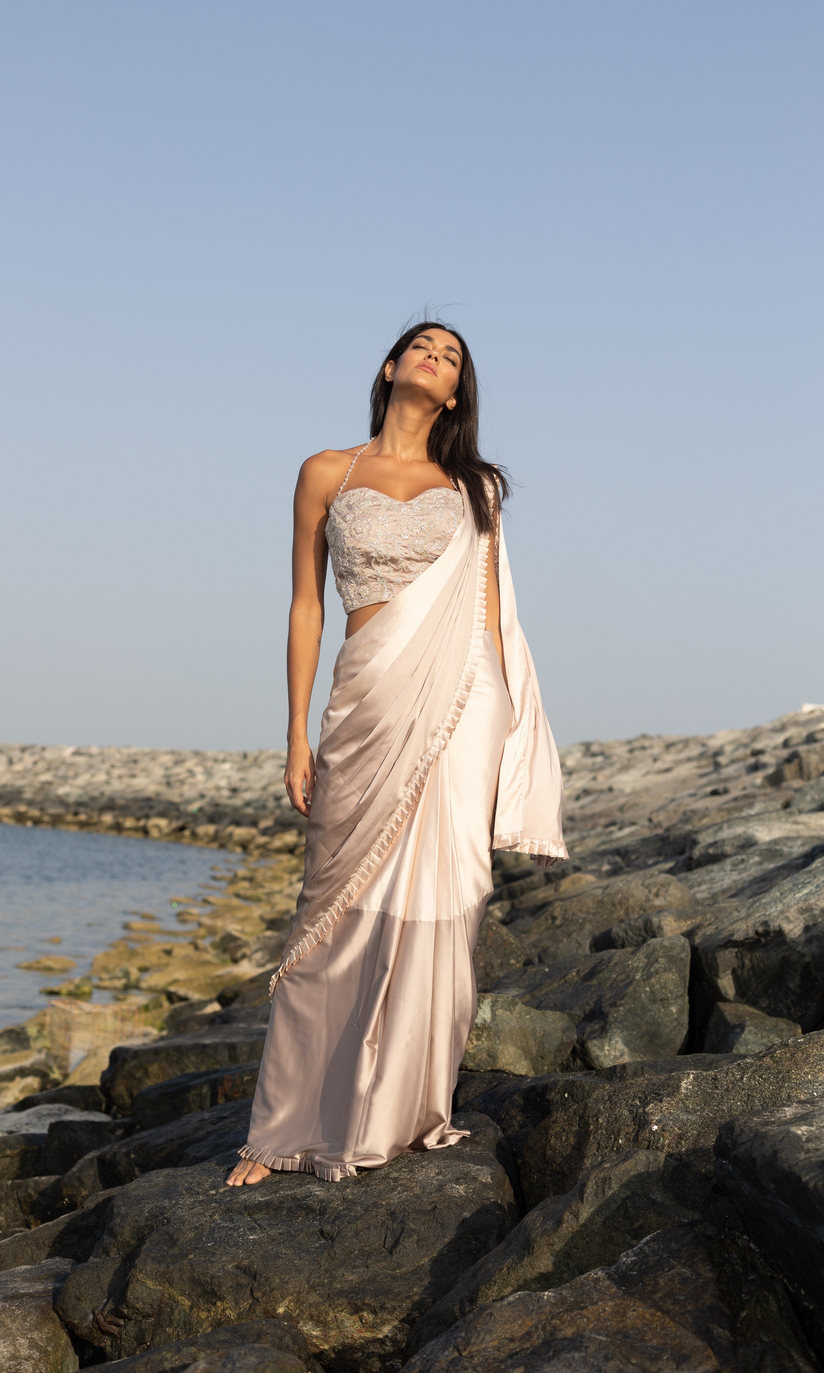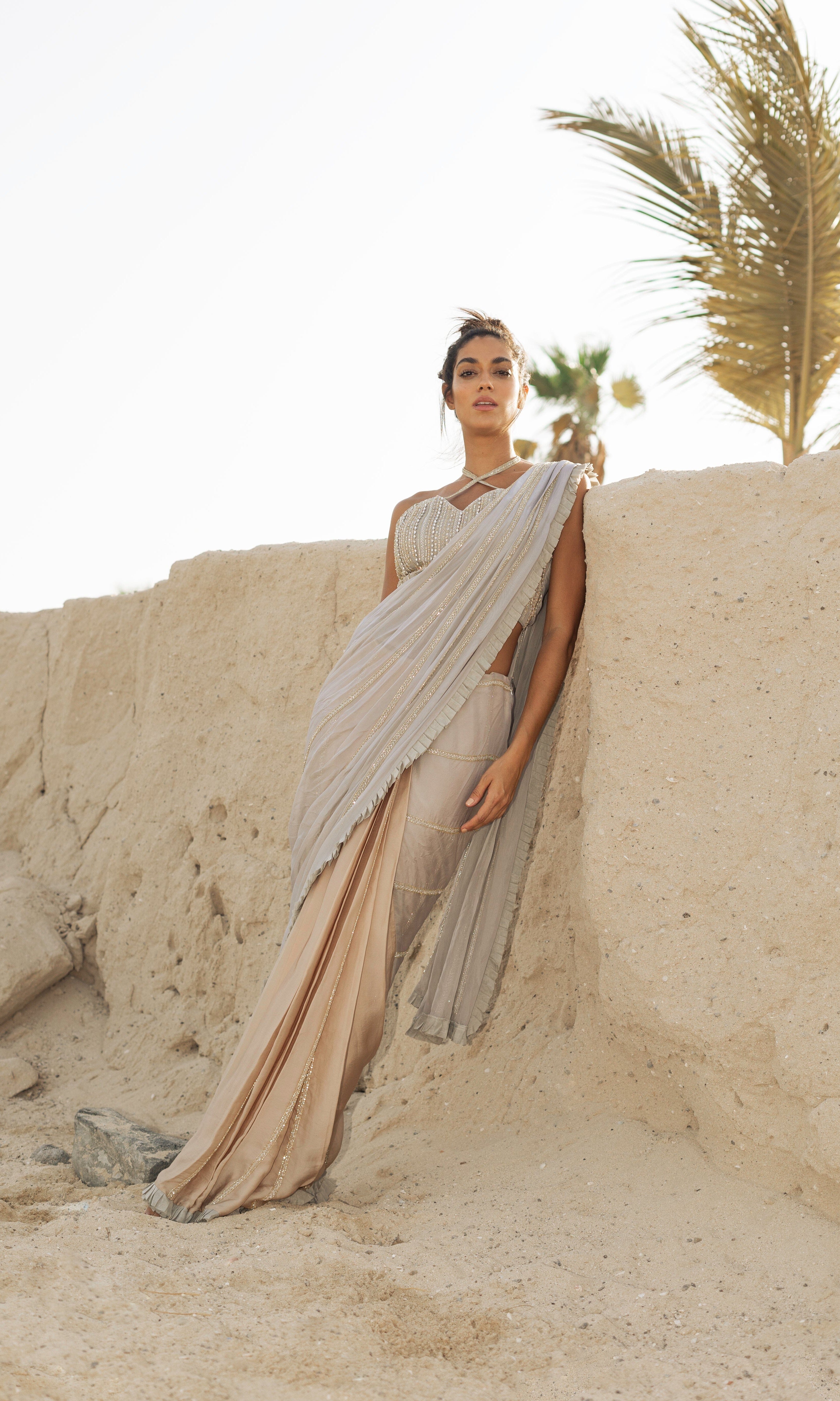 Rosé transmite una vibra con sus siluetas frescas, saris listos para usar y cortes llamativos.