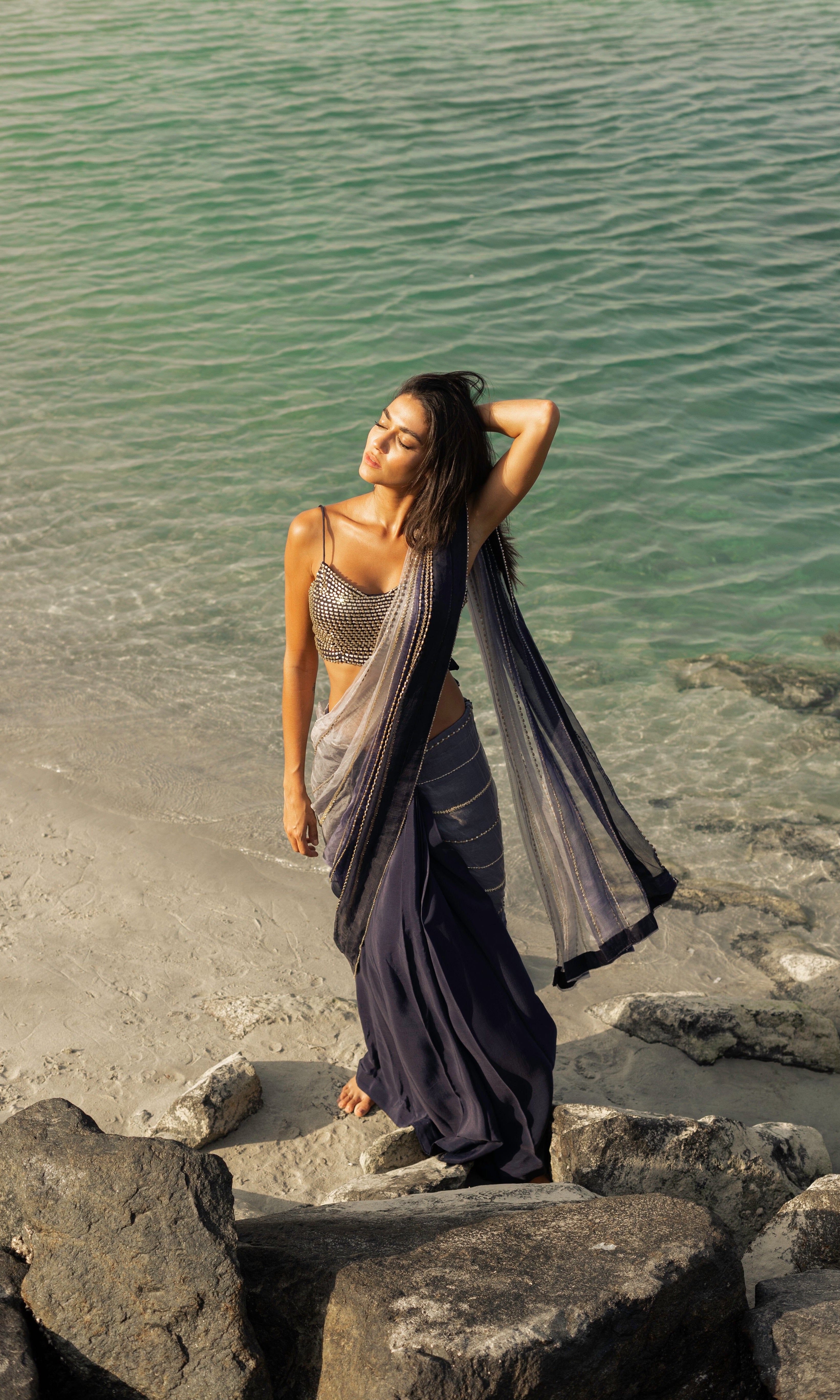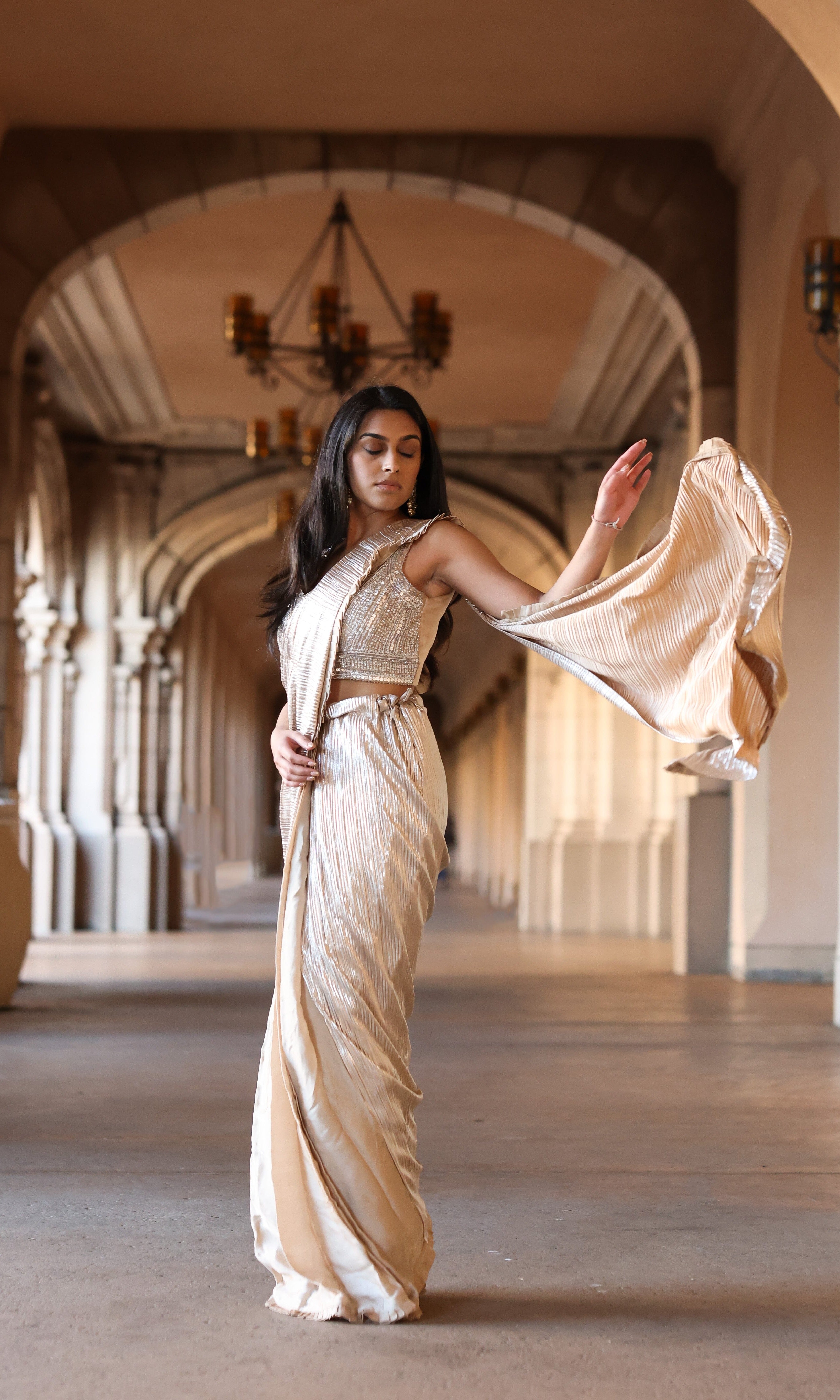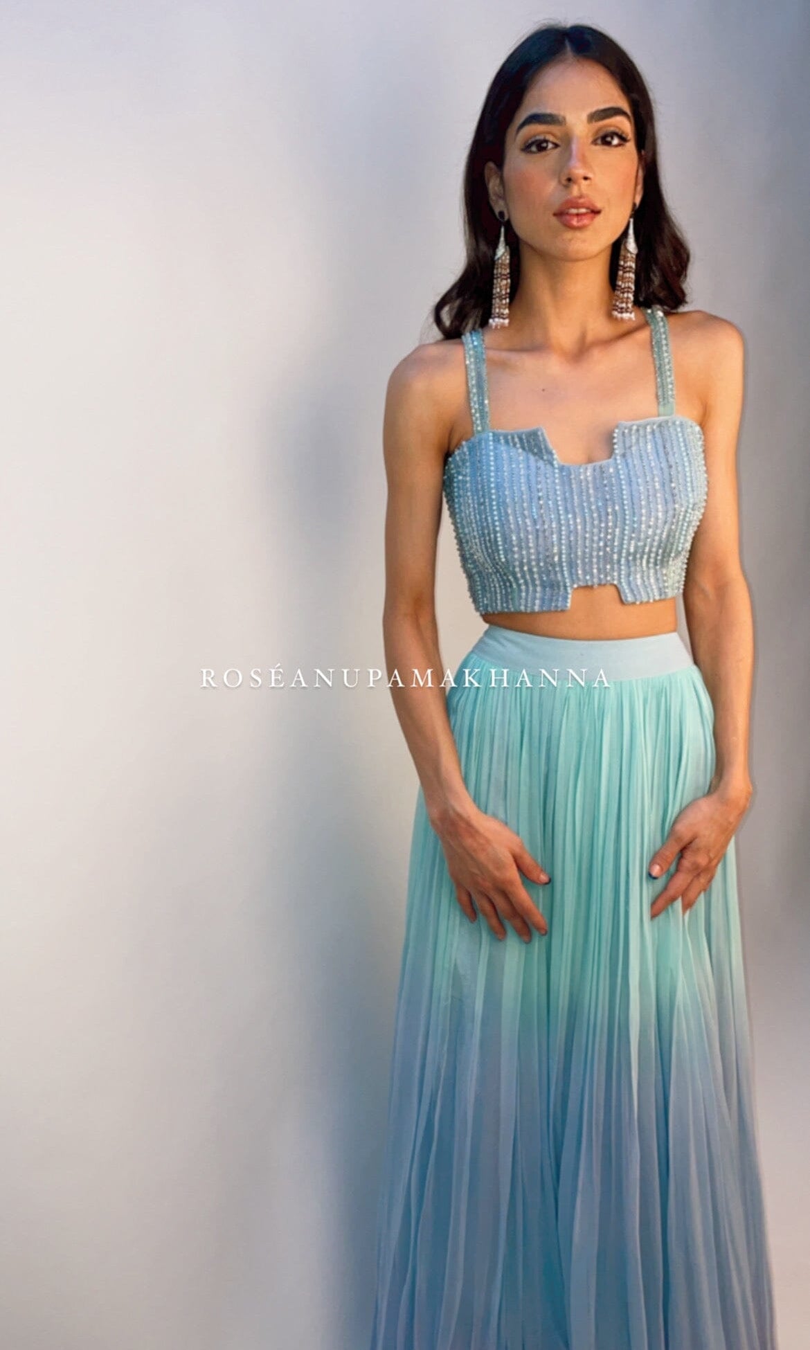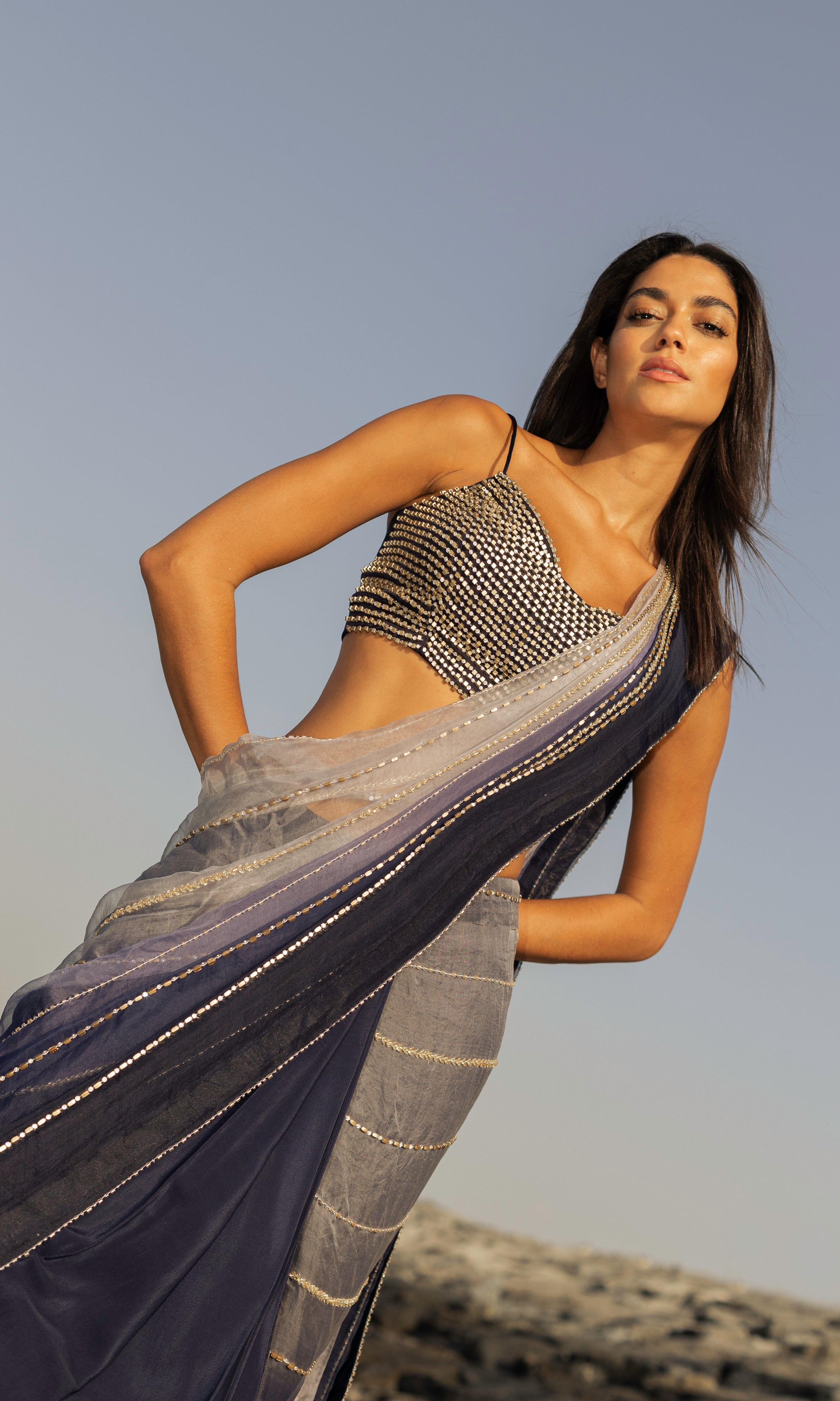 Rosé transmite una vibra con sus siluetas frescas, saris listos para usar y cortes llamativos.