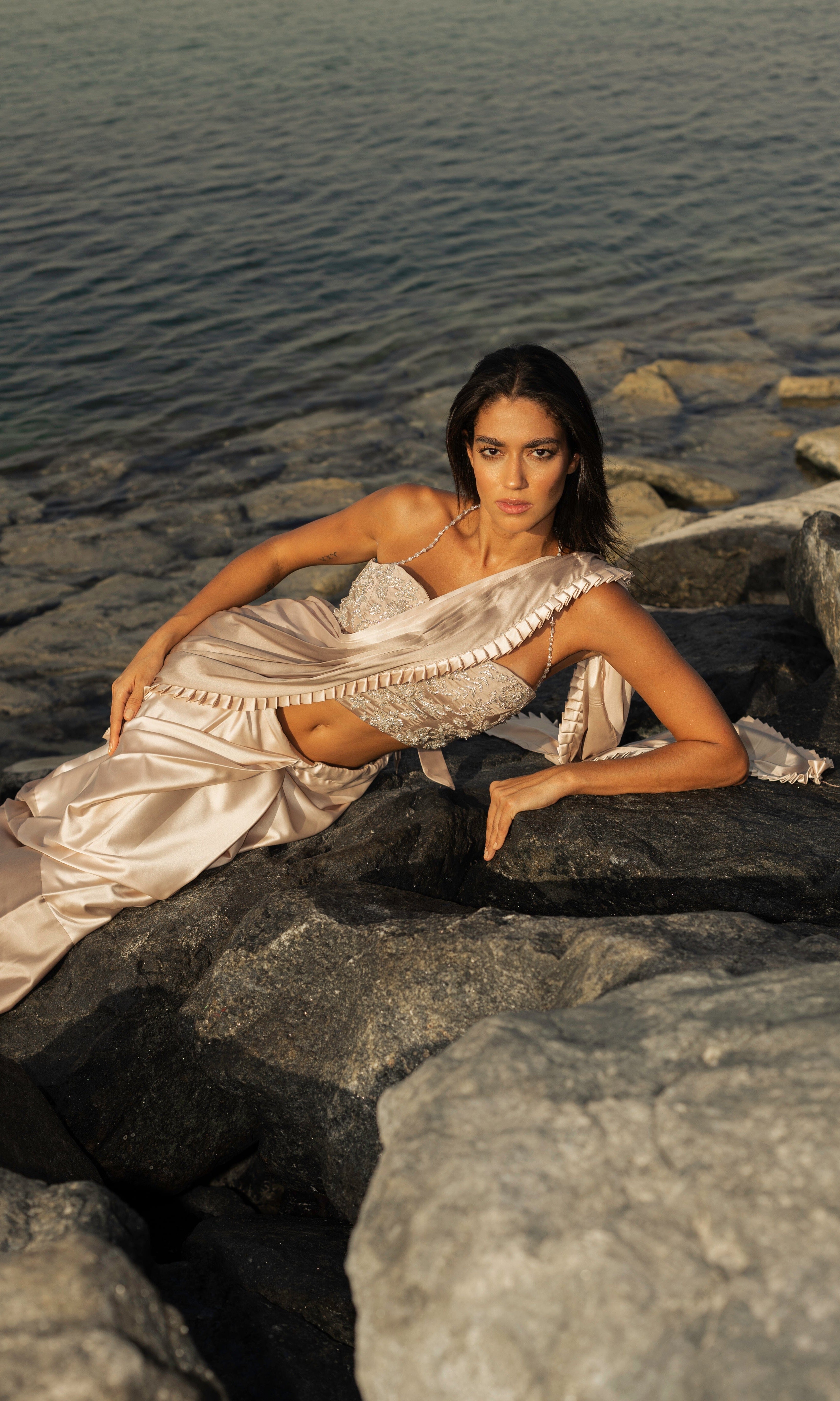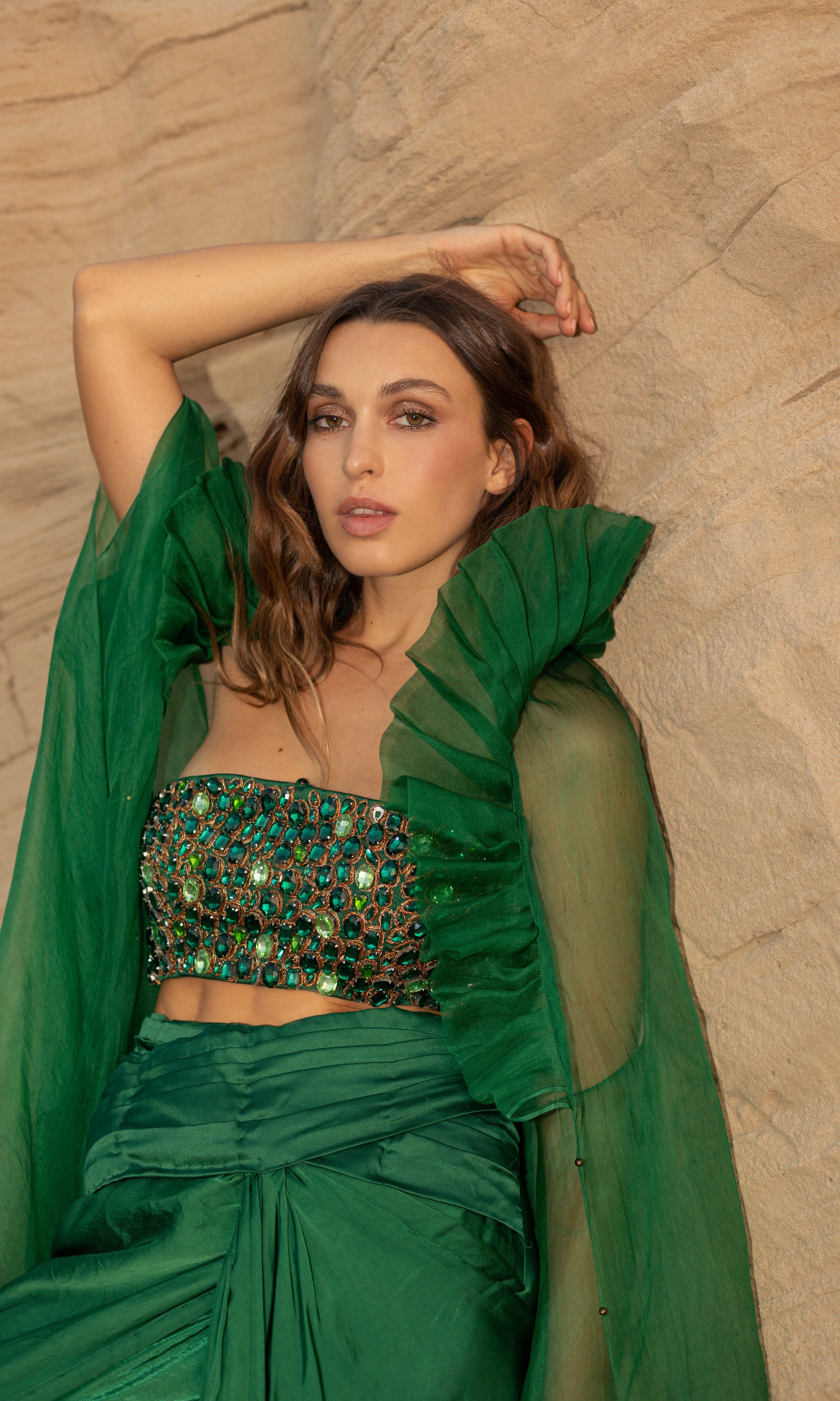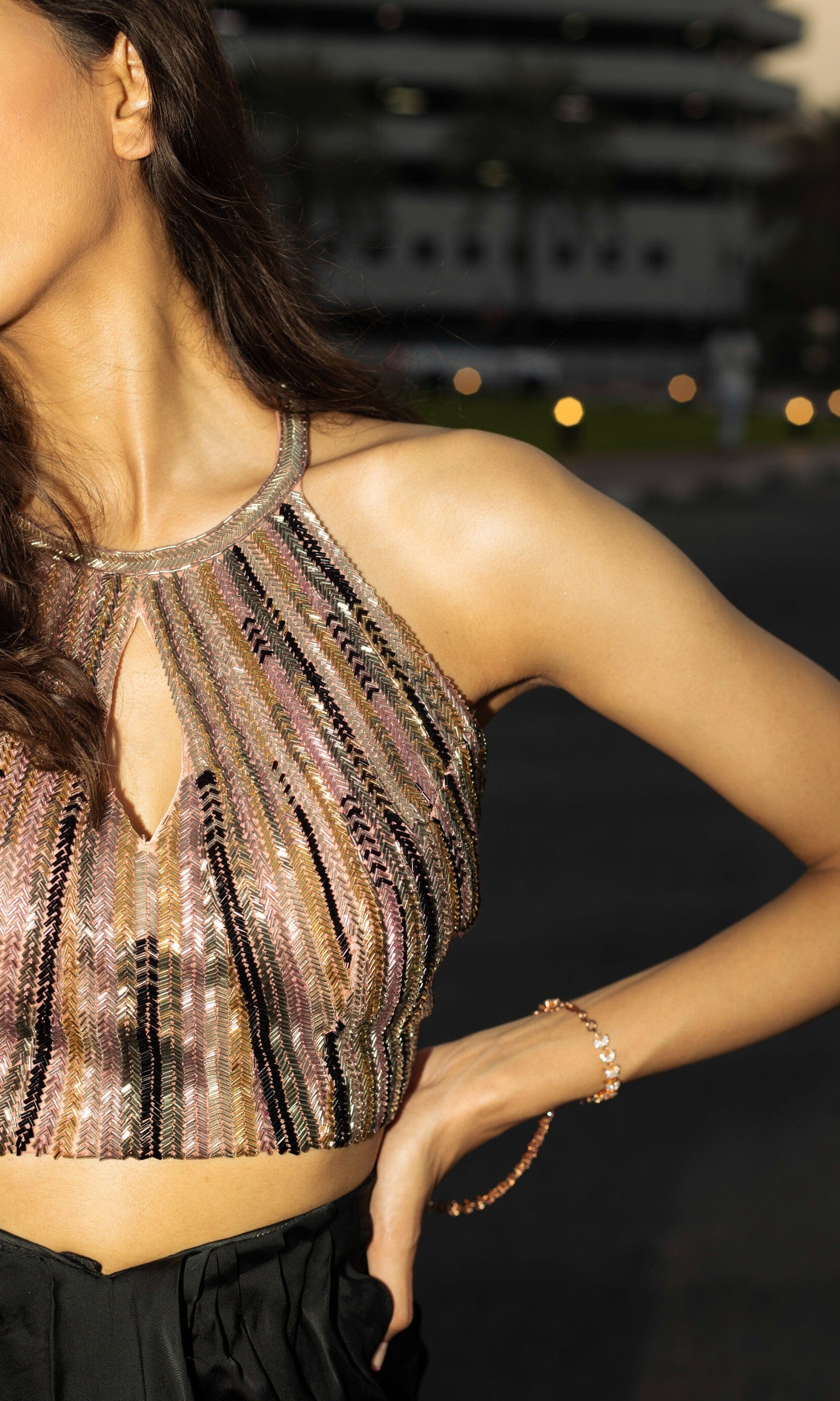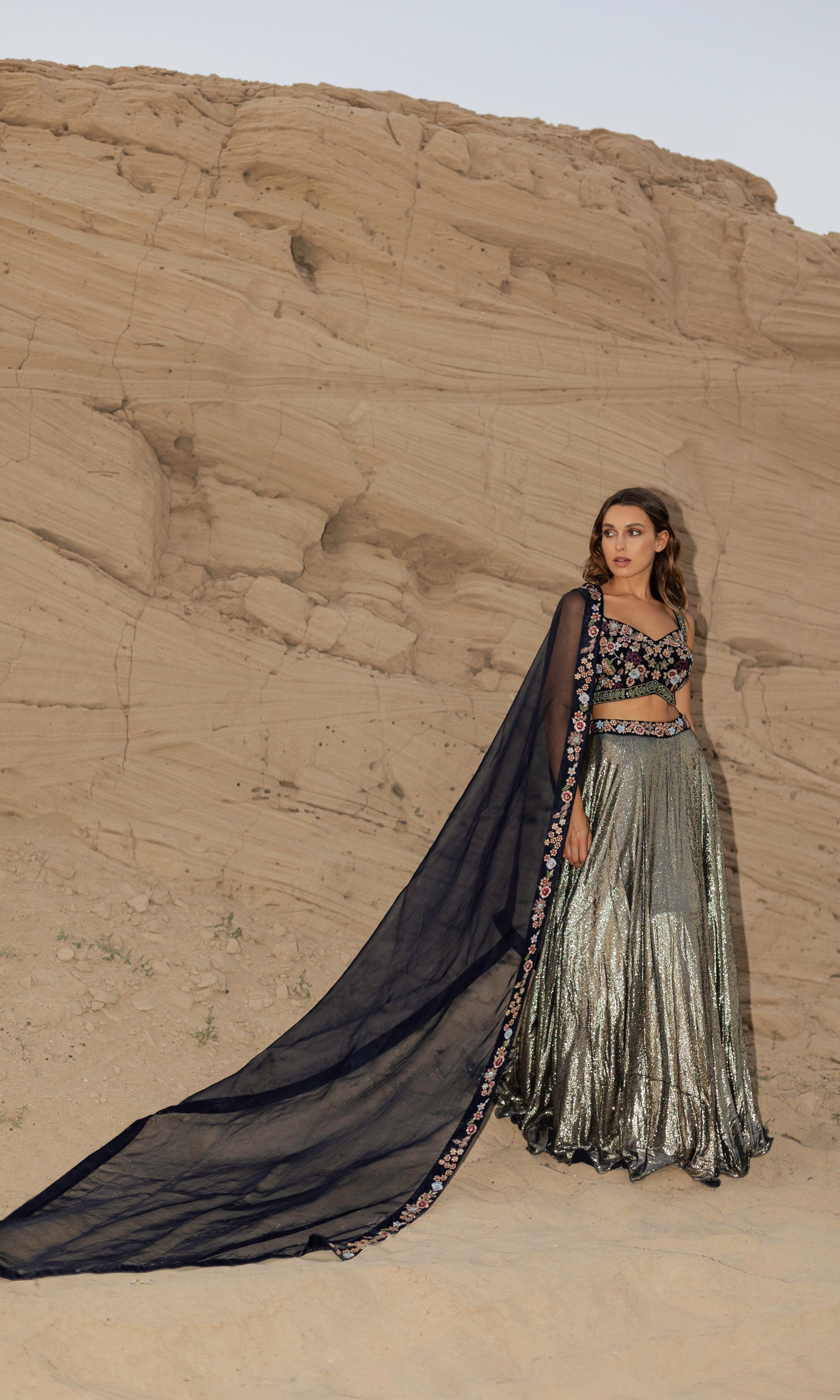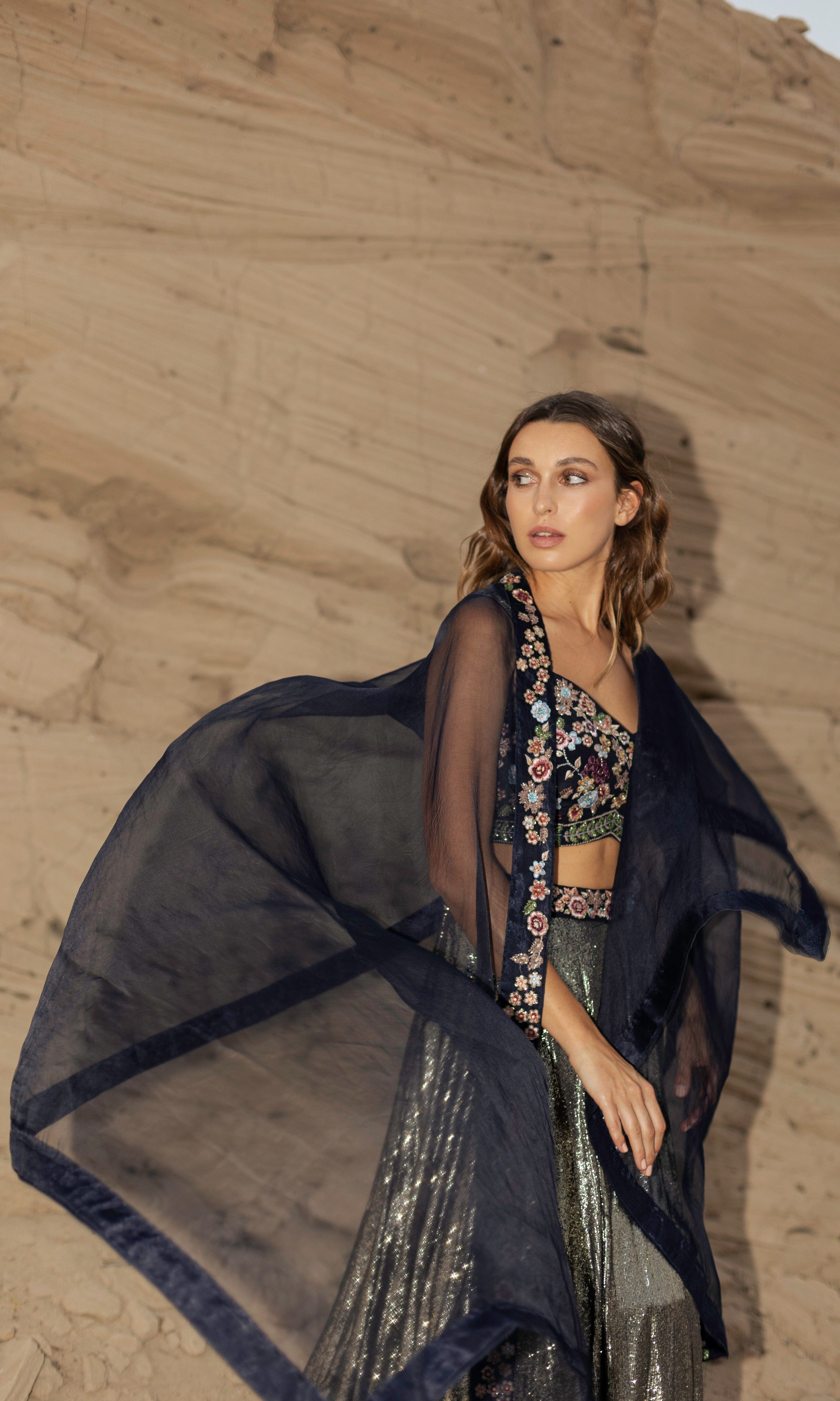 Rosé transmite una vibra con sus siluetas frescas, saris listos para usar y cortes llamativos.
