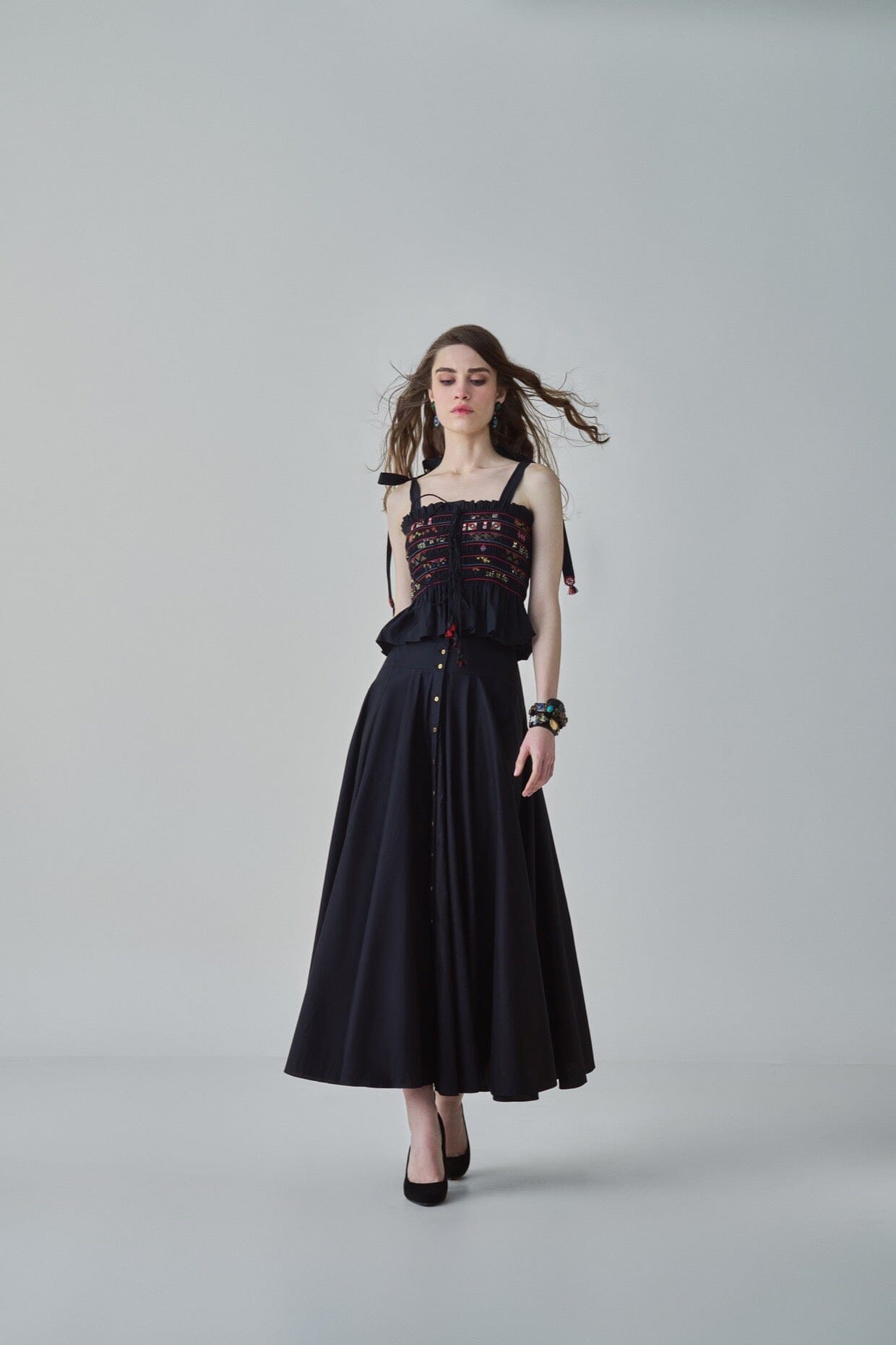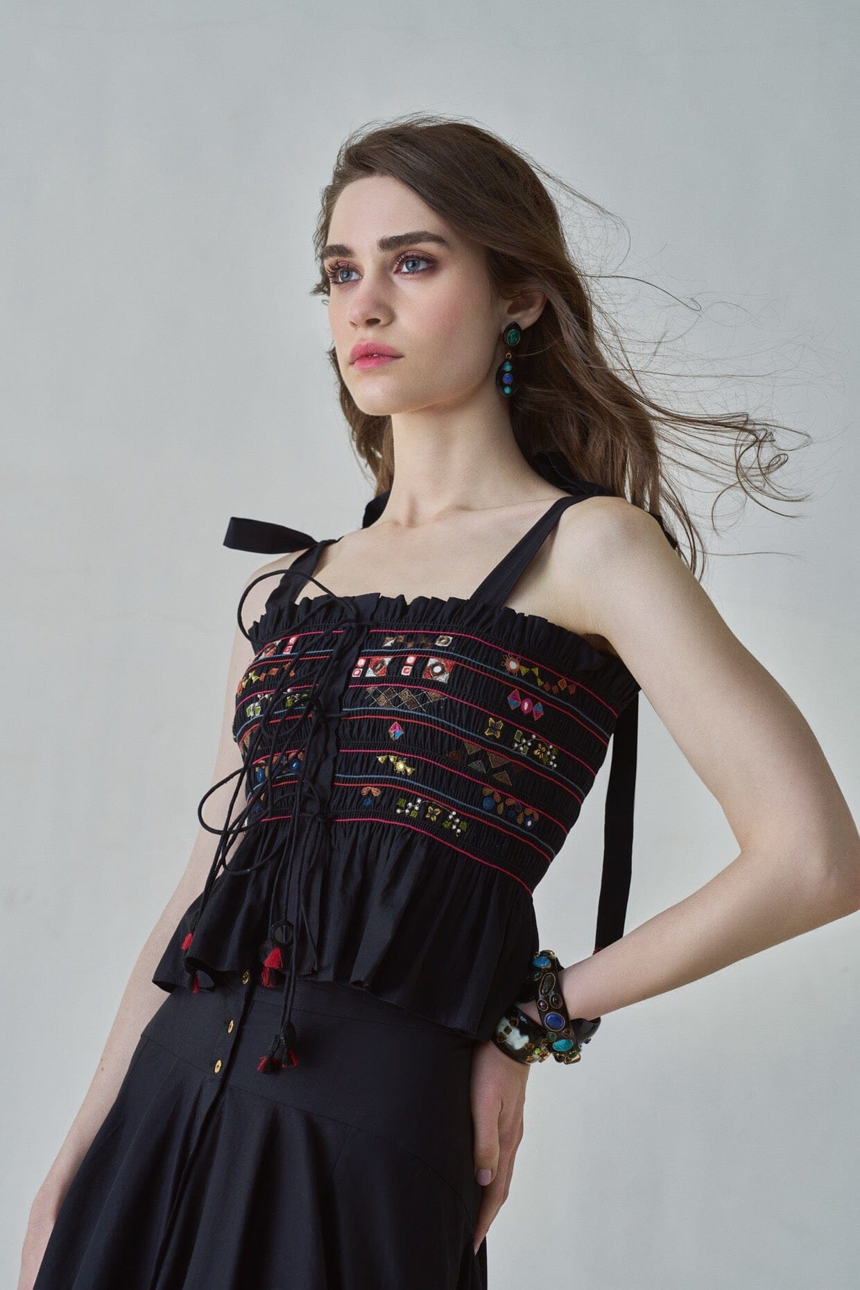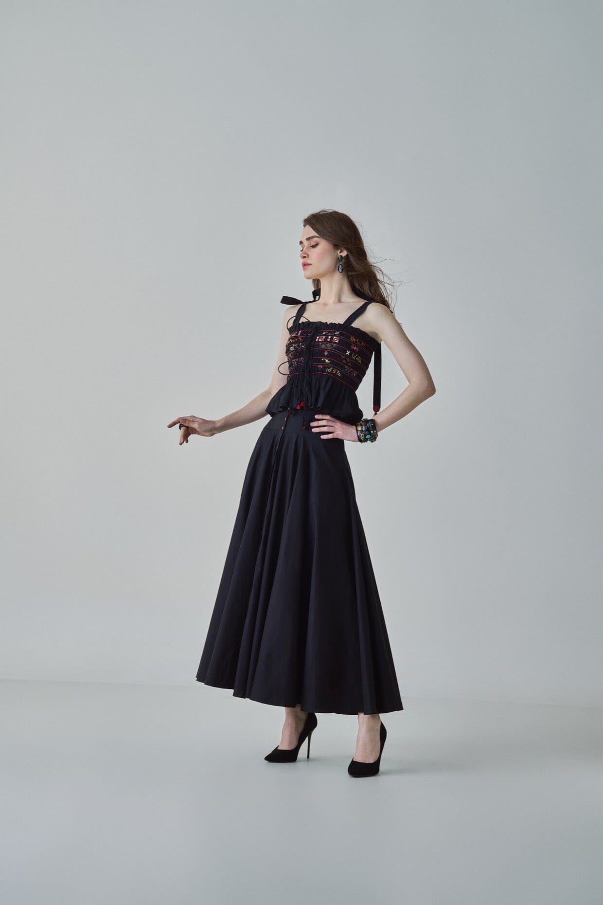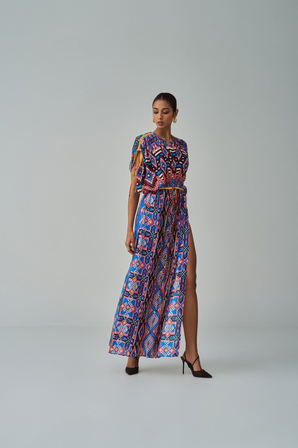 Saaksha & Kinni es una oda a la tradición. Teniendo en cuenta la tradición y las raíces de la India: los estampados atrevidos, las técnicas de bordado en metal y piedra y el amor de los diseñadores por las telas.