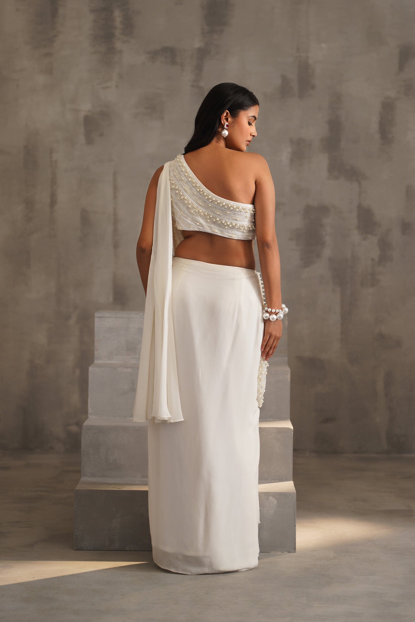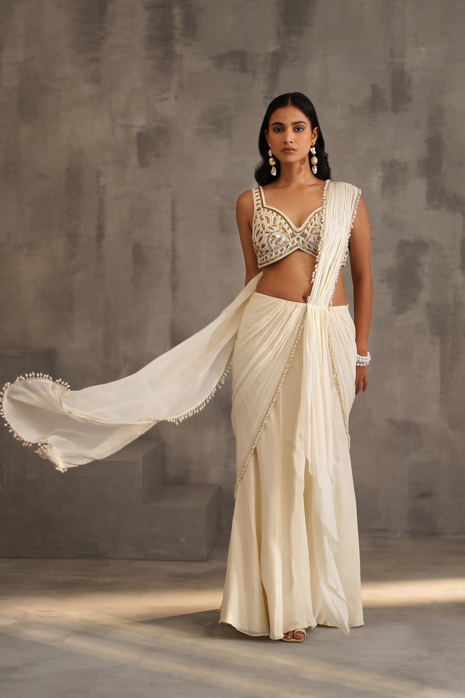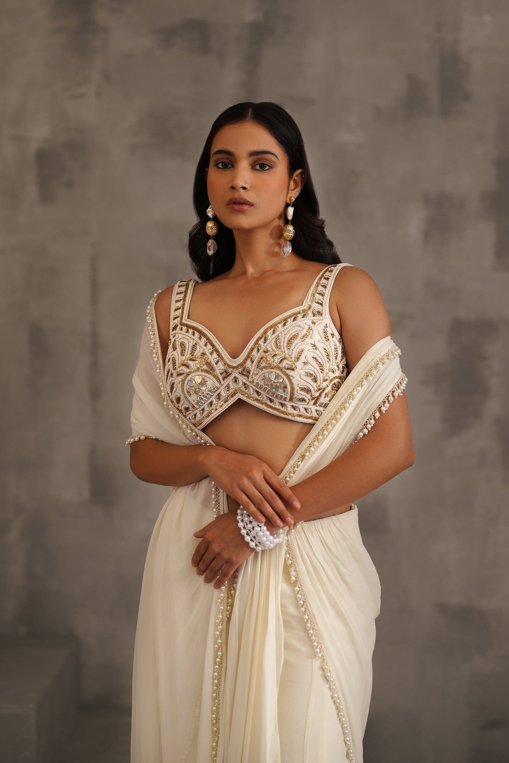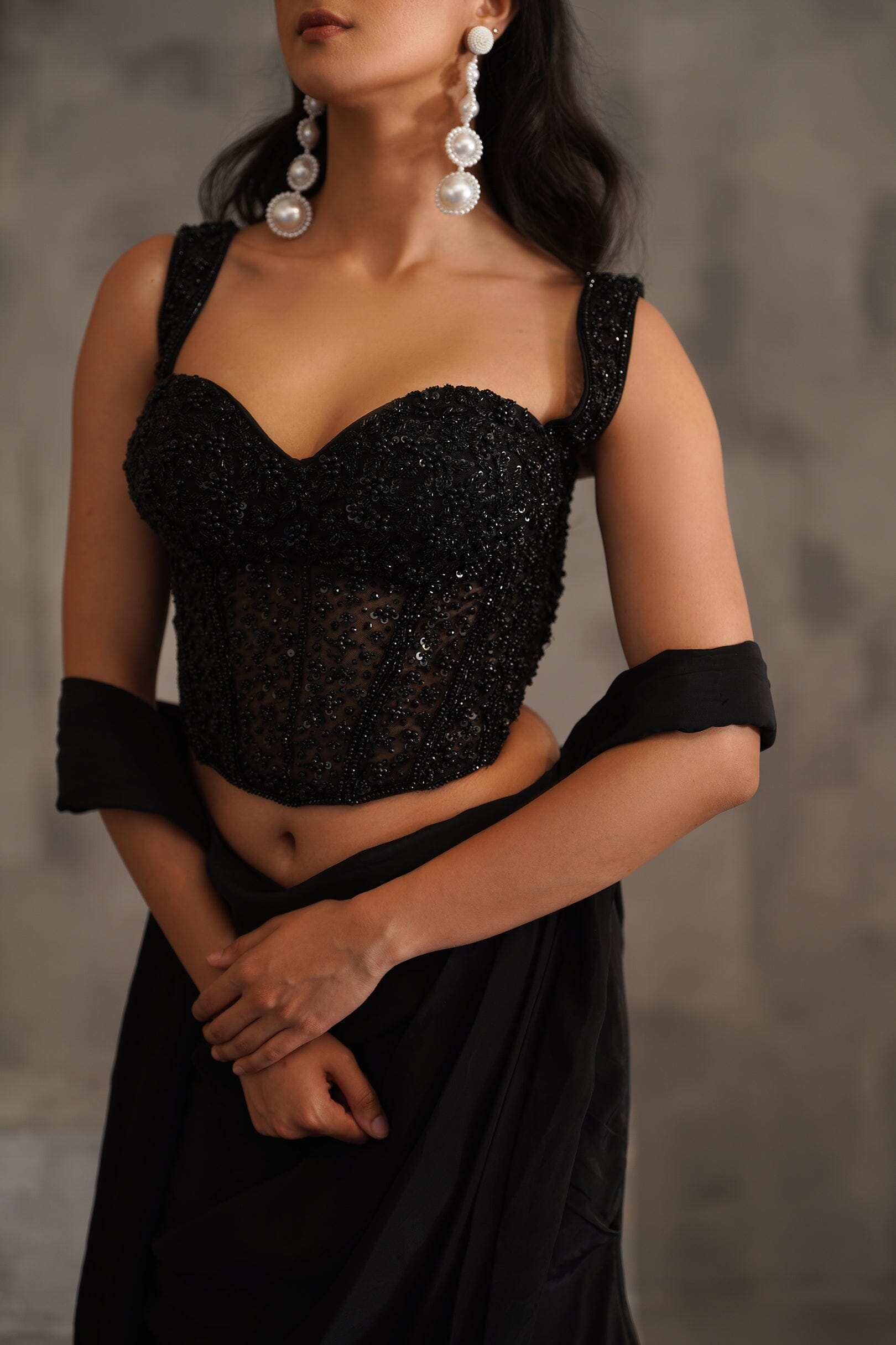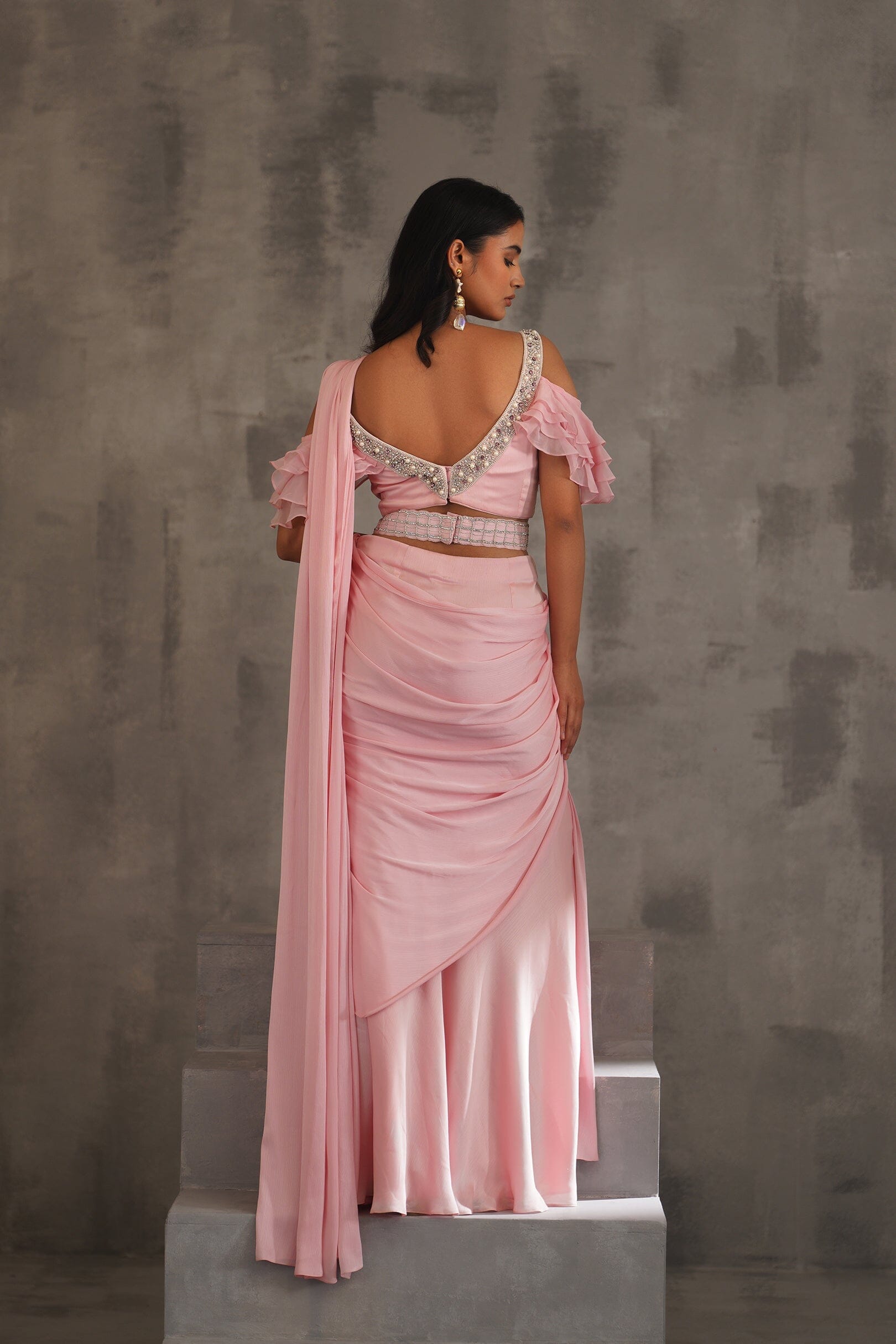 Fuchsia Embroidered Blouse, Drape Saree and Belt