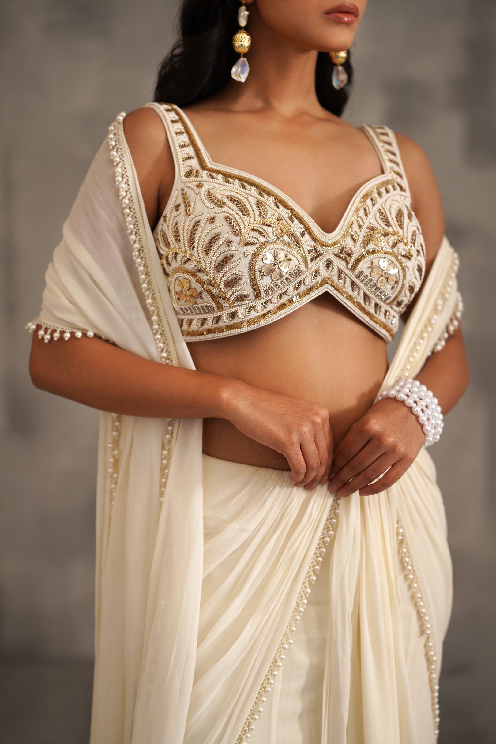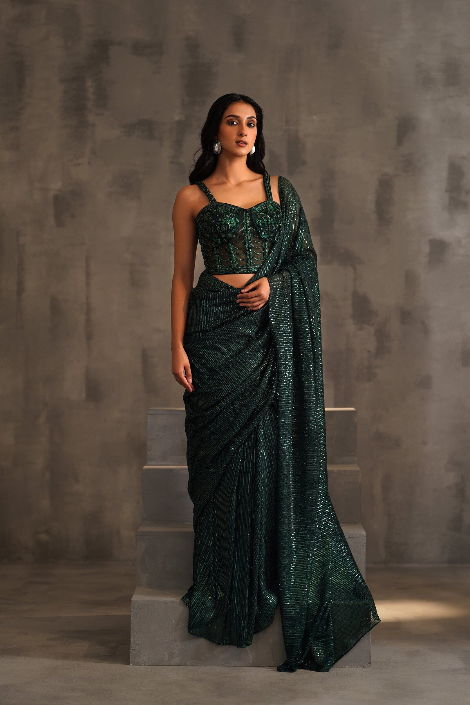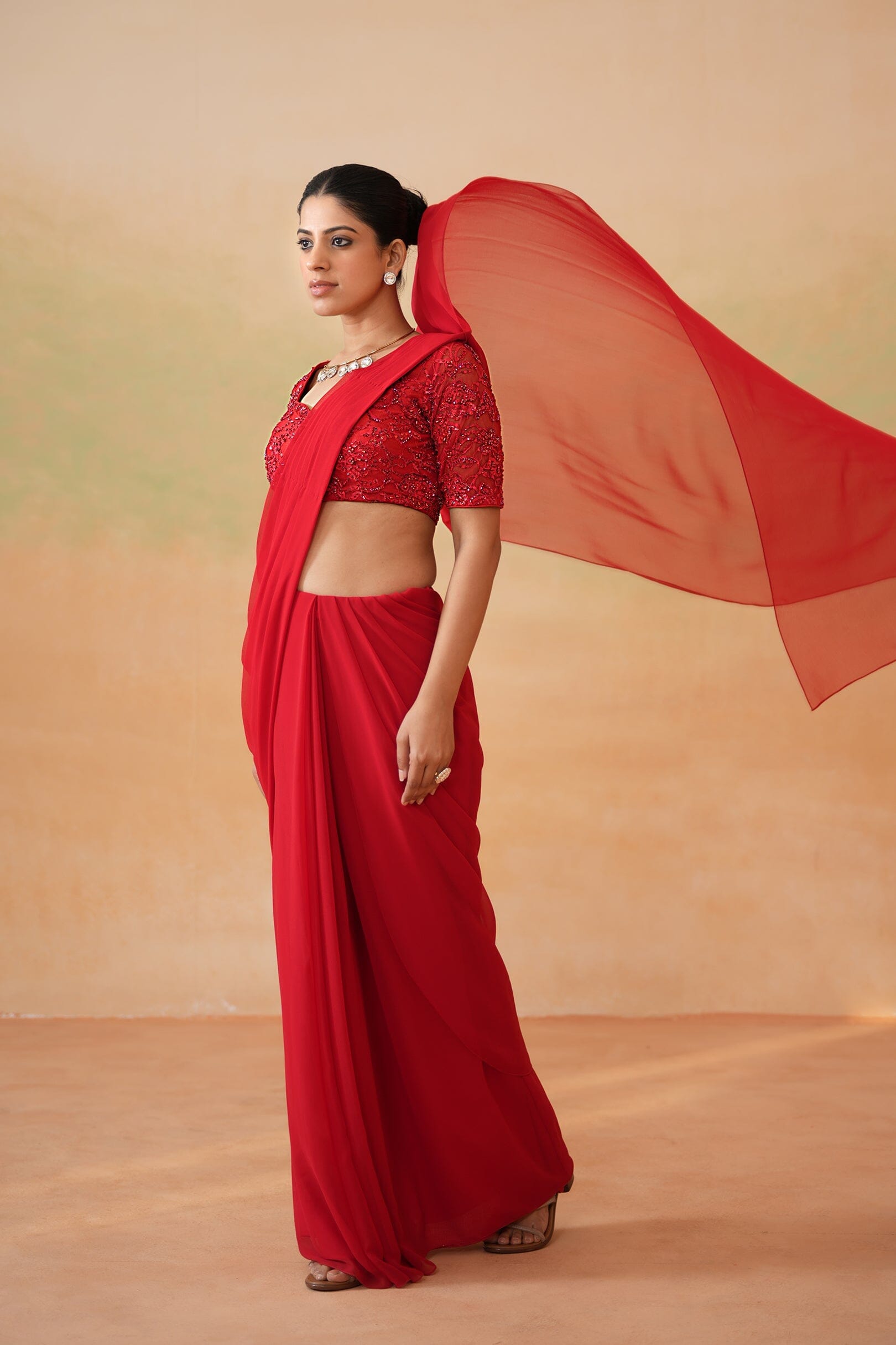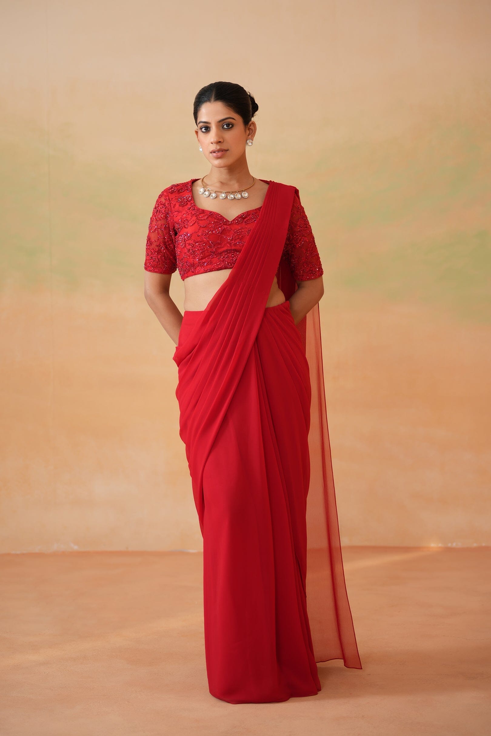 Fuchsia Embroidered Blouse and Pre Pleated Saree