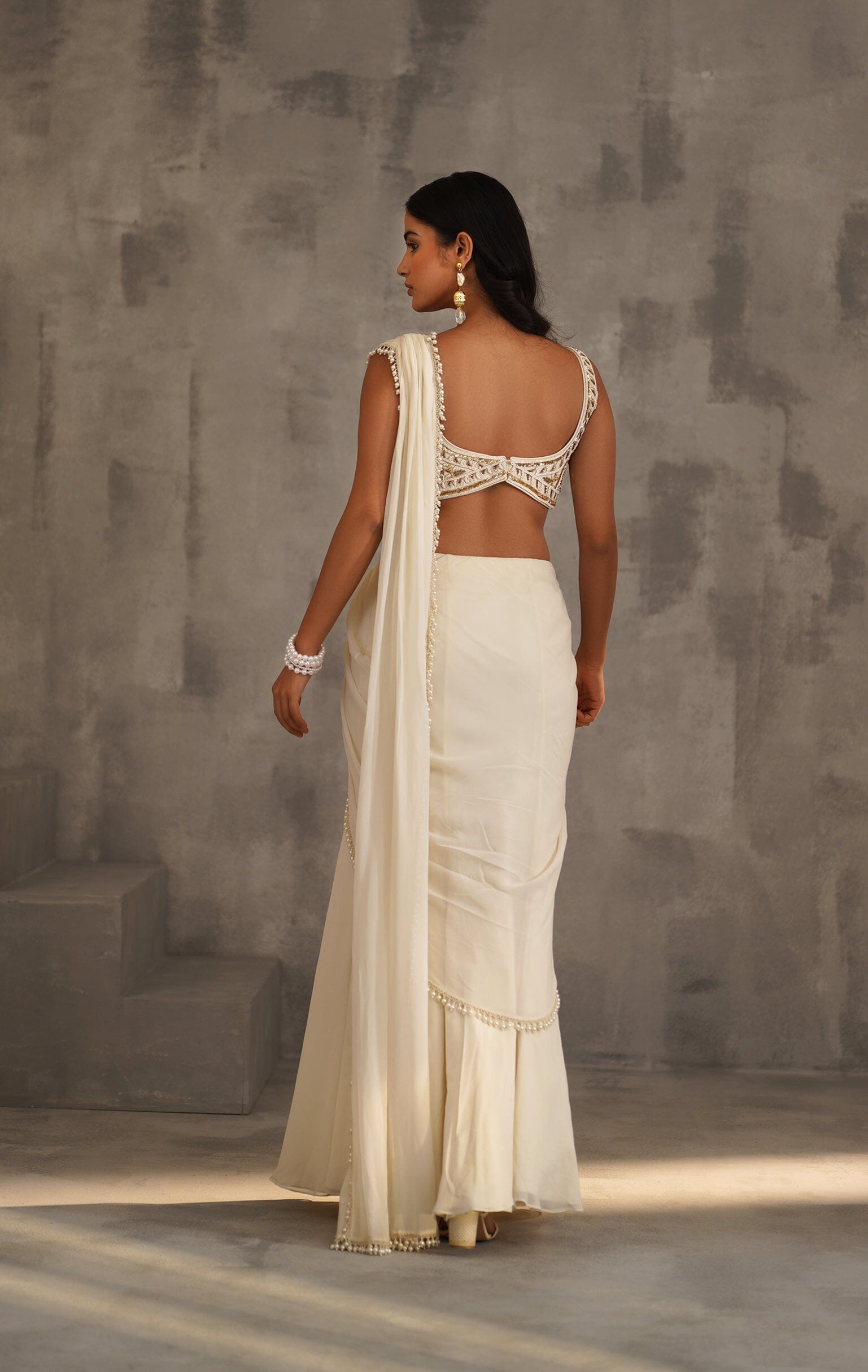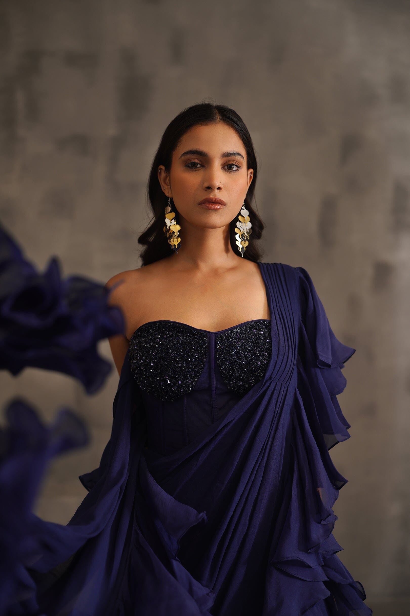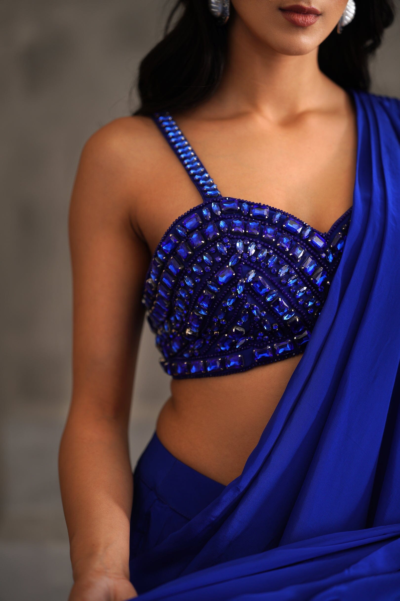 Royal Blue Embroidered Blouse and Drape Lycra Saree