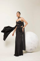 Command the spotlight in our black silhouette— a sculpted silhouette that marries structure with fluidity. Designed in luxurious fabric, the corset contours the body with precision, while the skirt cascades effortlessly for a modern, yet timeless appeal. With cinched waistline, this ensemble is your go-to for elevated celebrations and unforgettable entrances.