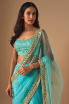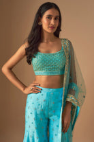 Sky Blue Embroidered Sharara Sari Set