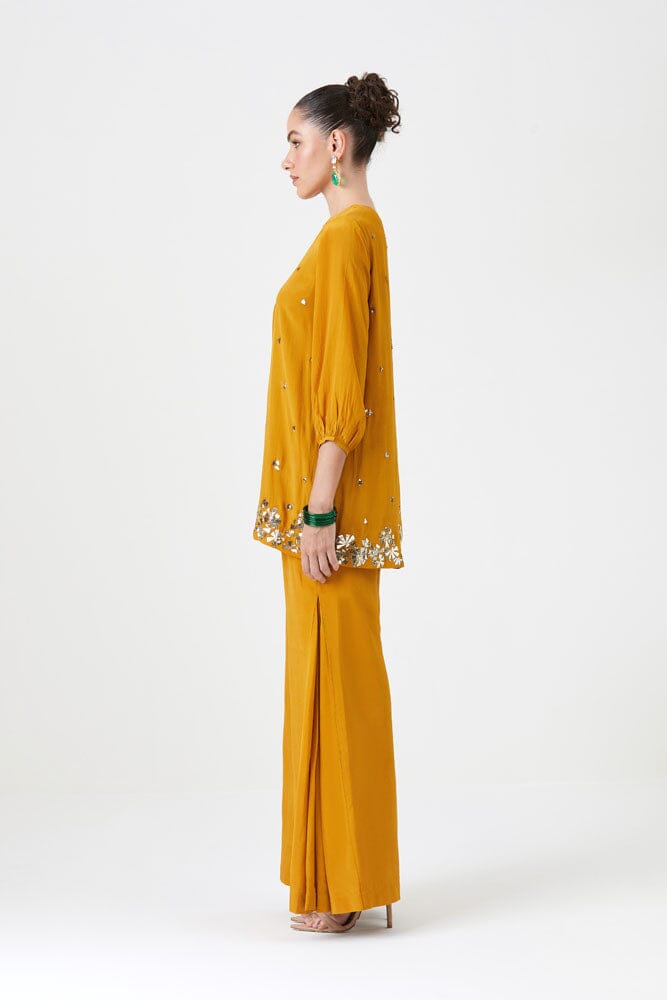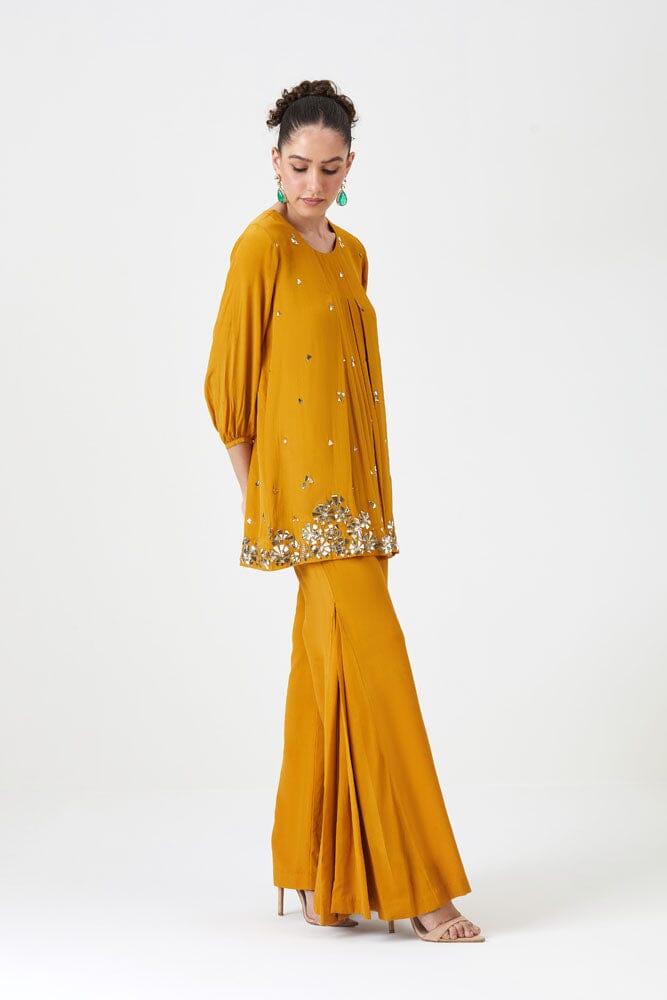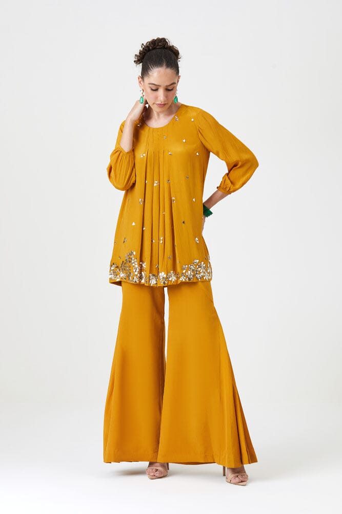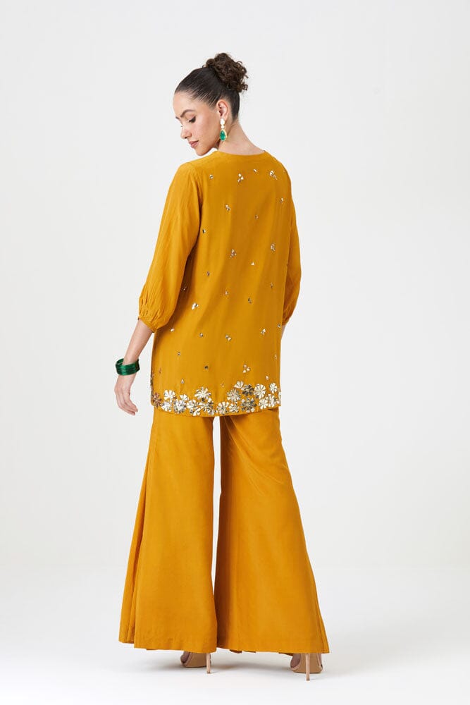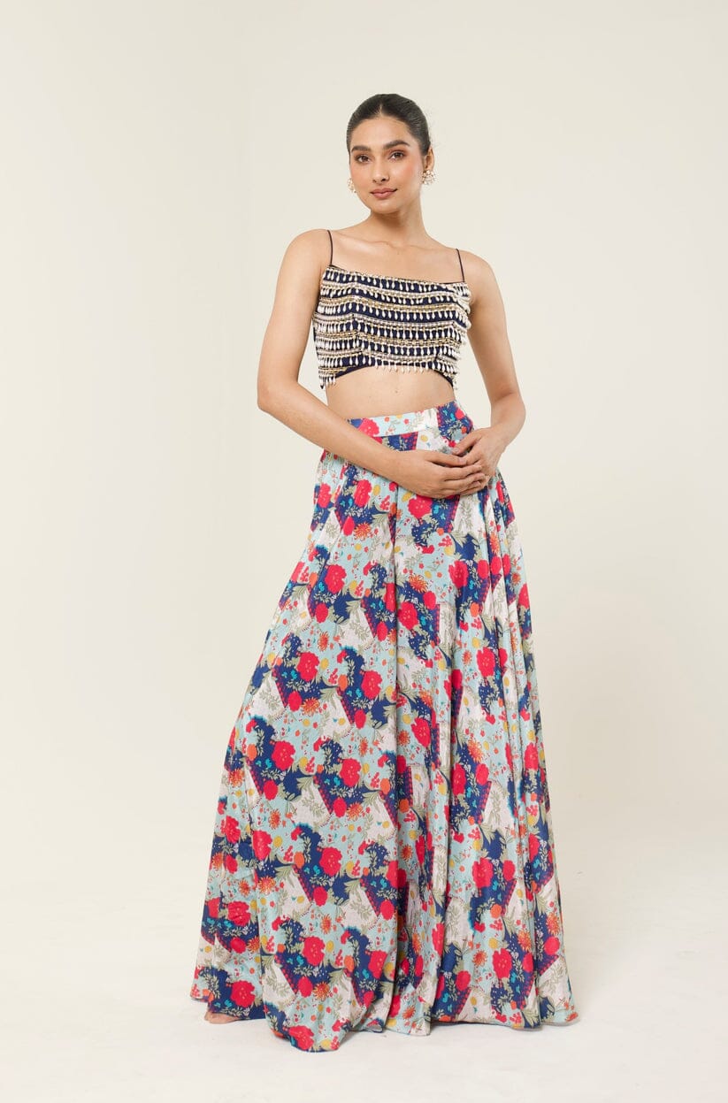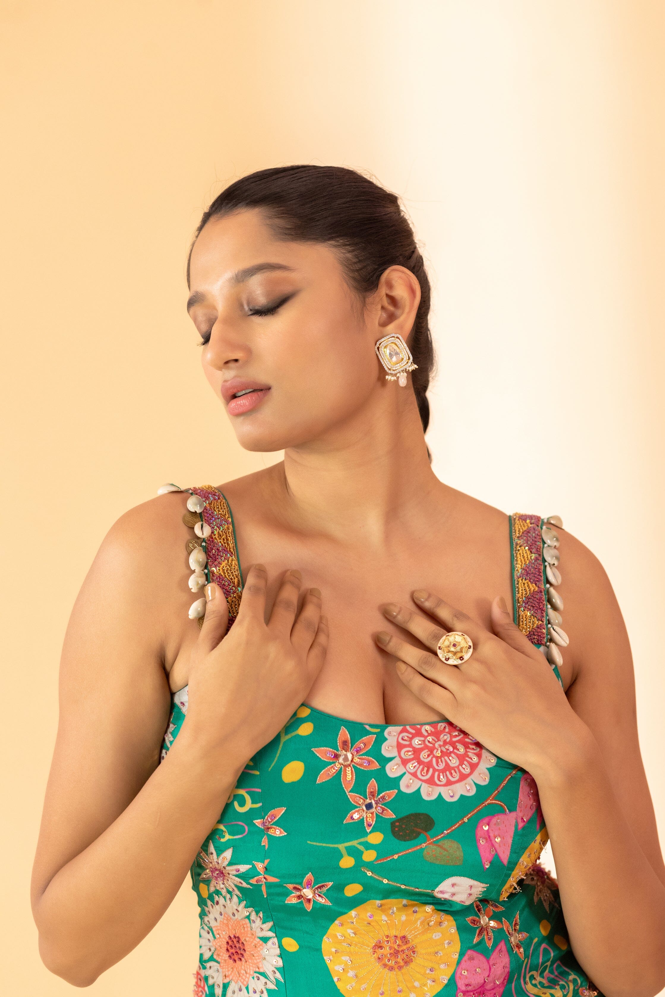 Elvina - Brick Brown, Ivory & Teal Sharara Set