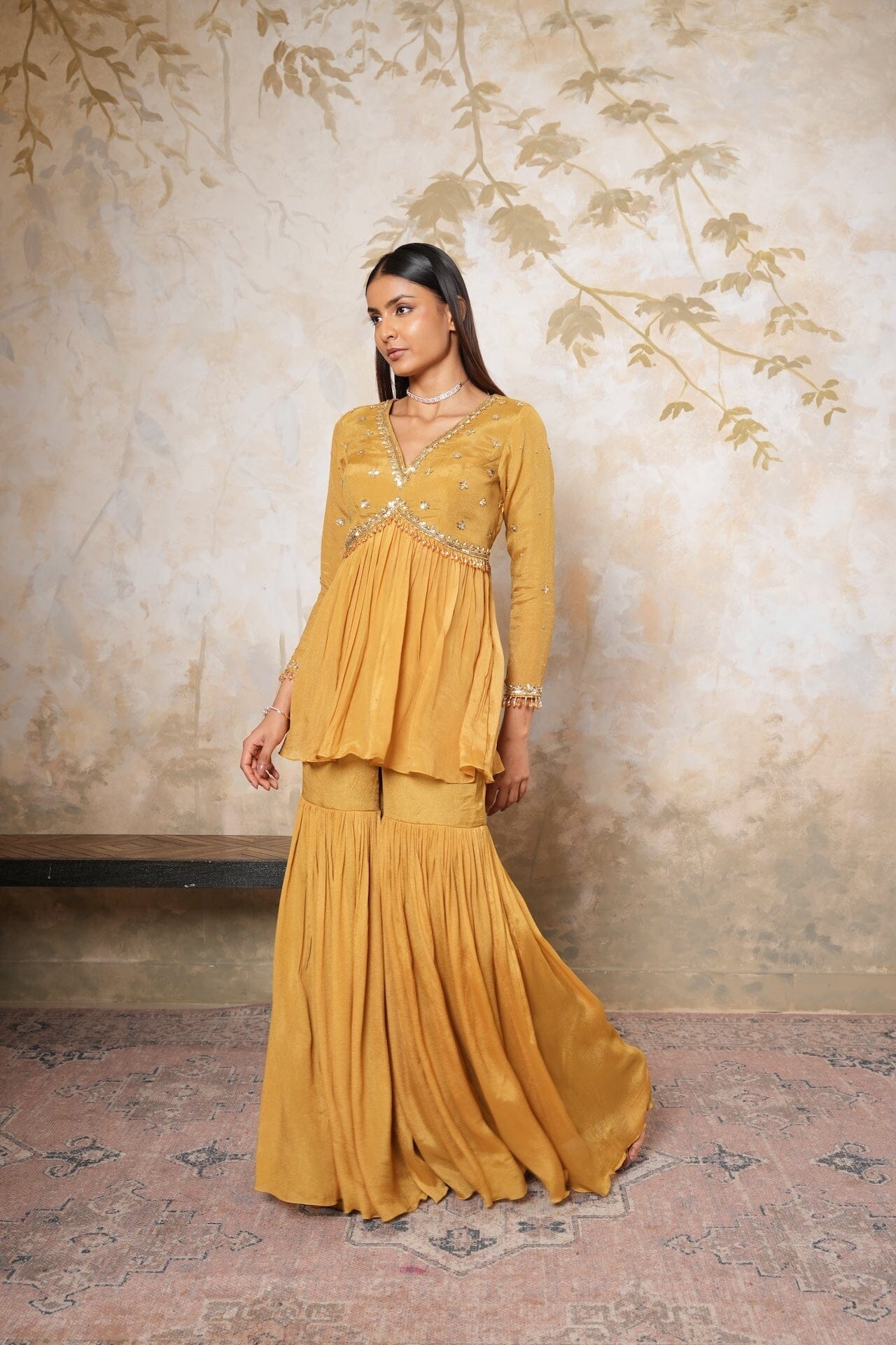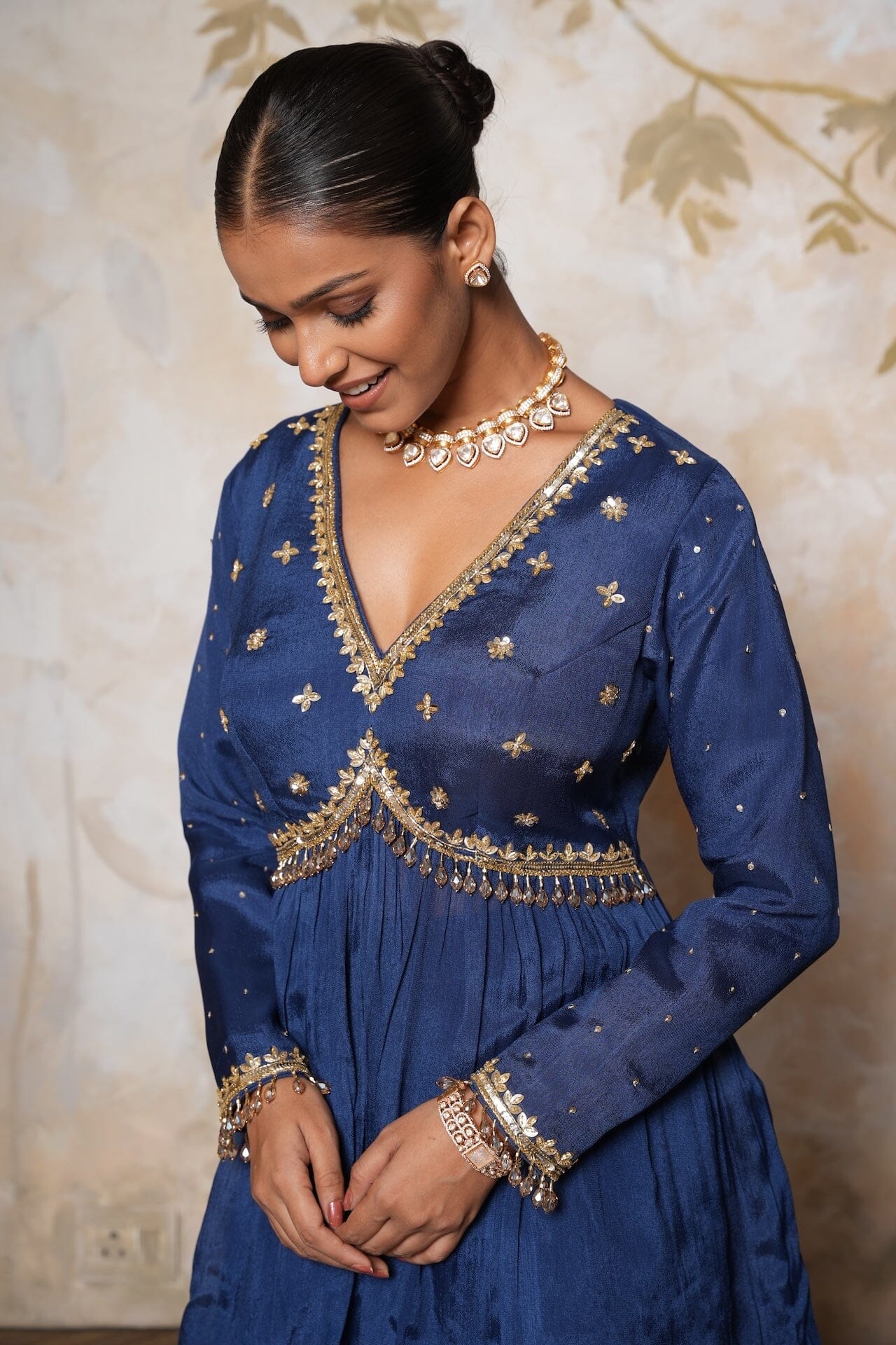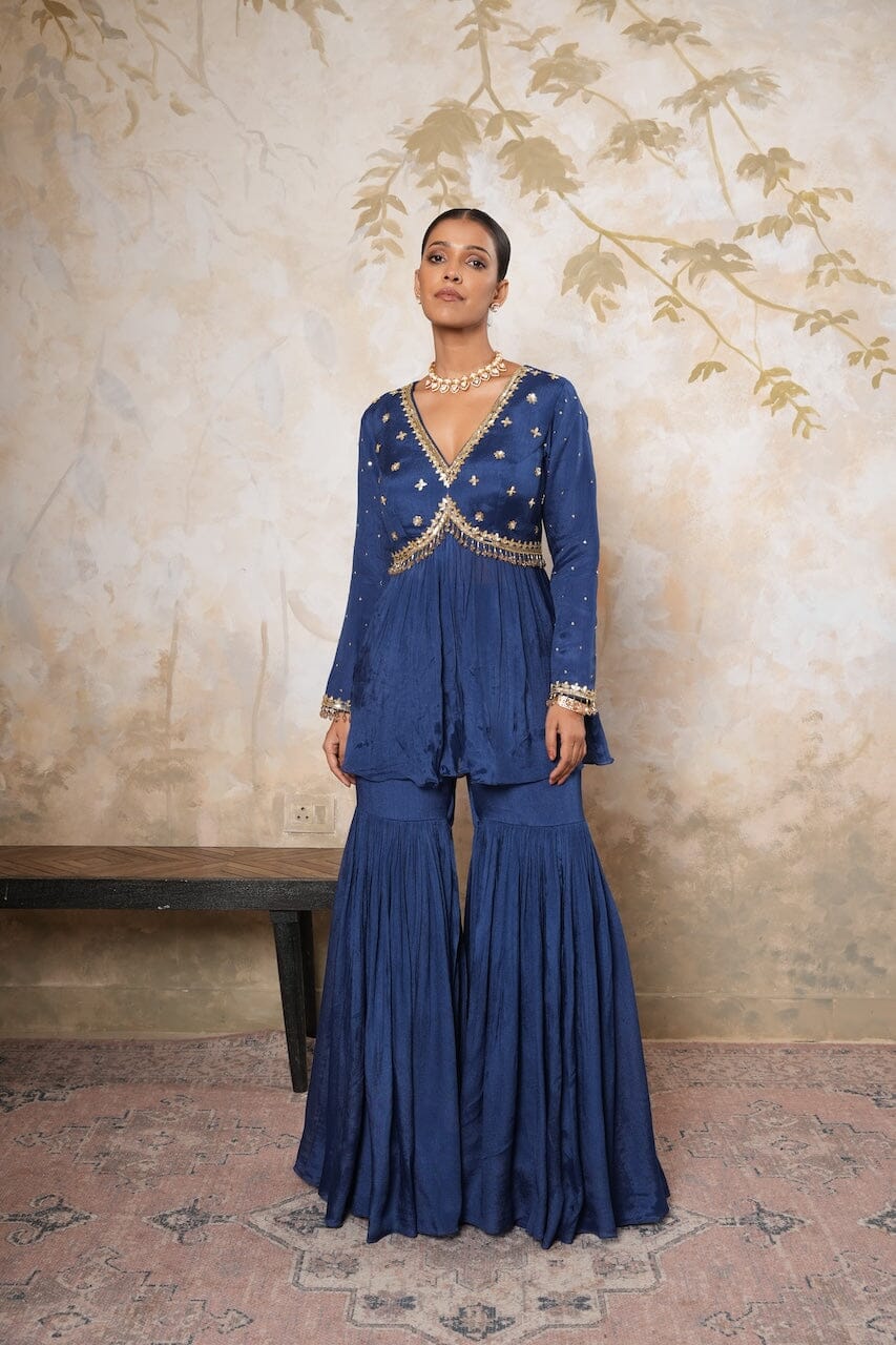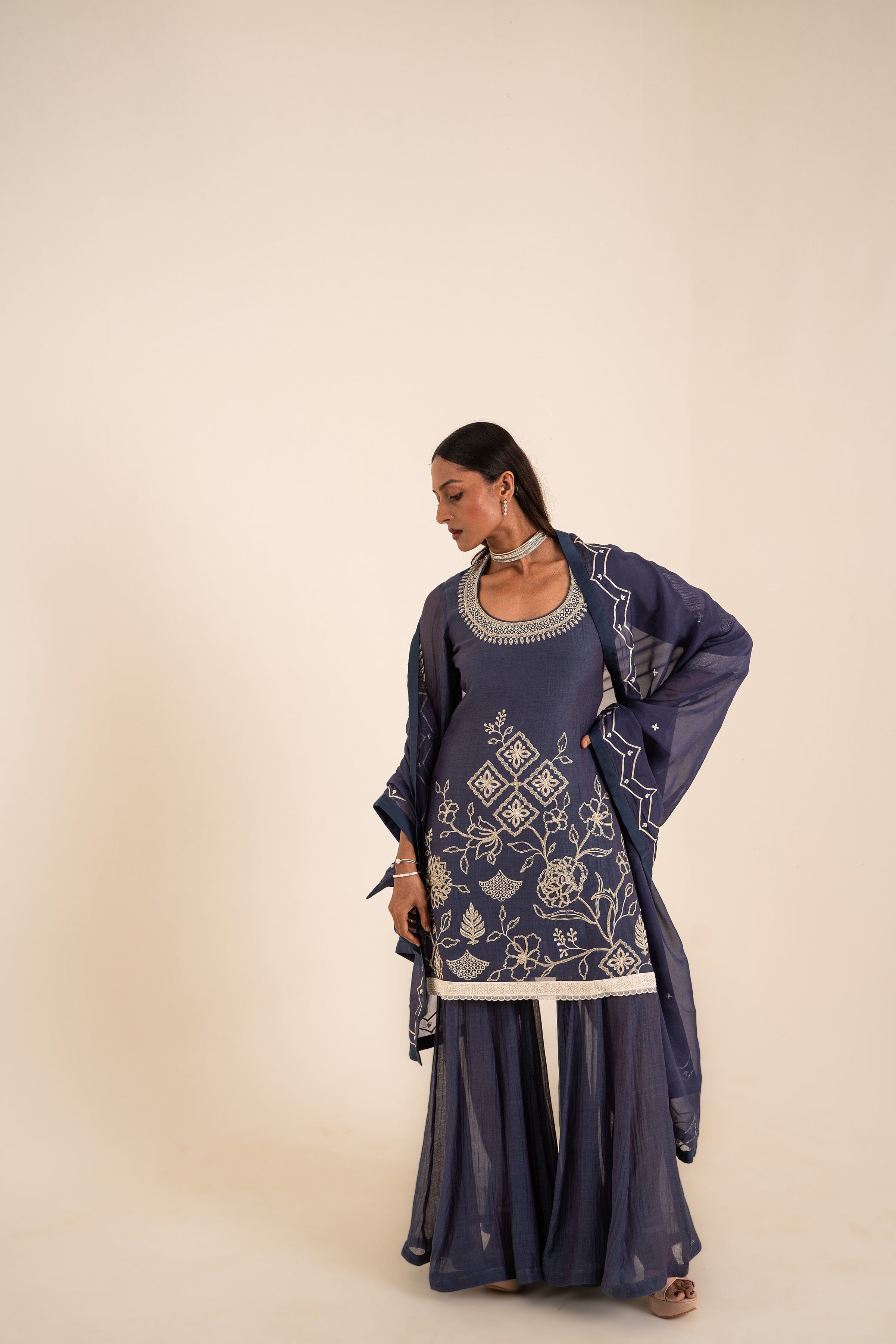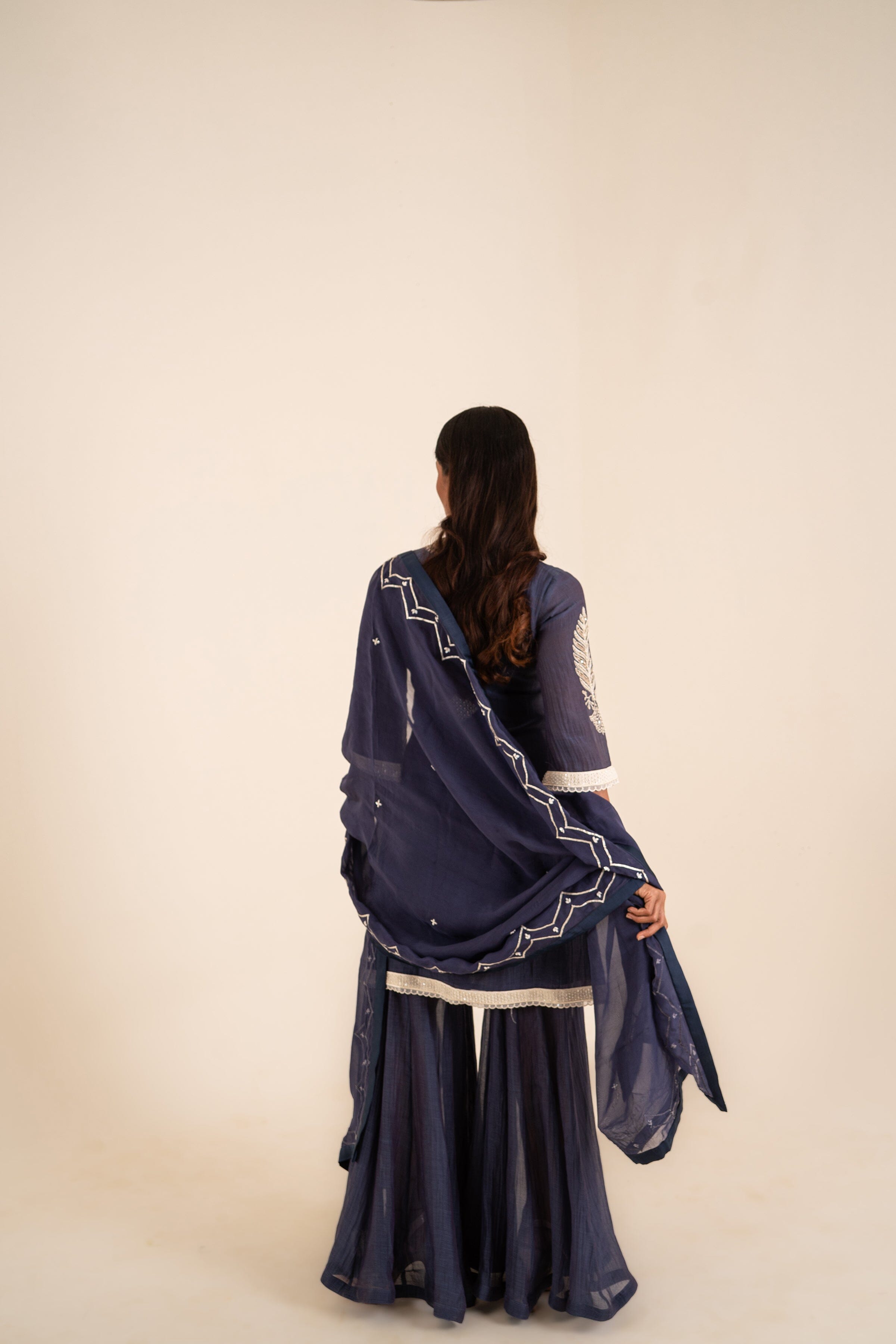 MEHER BLUE TISSUE CHANDERI SHARARA SET