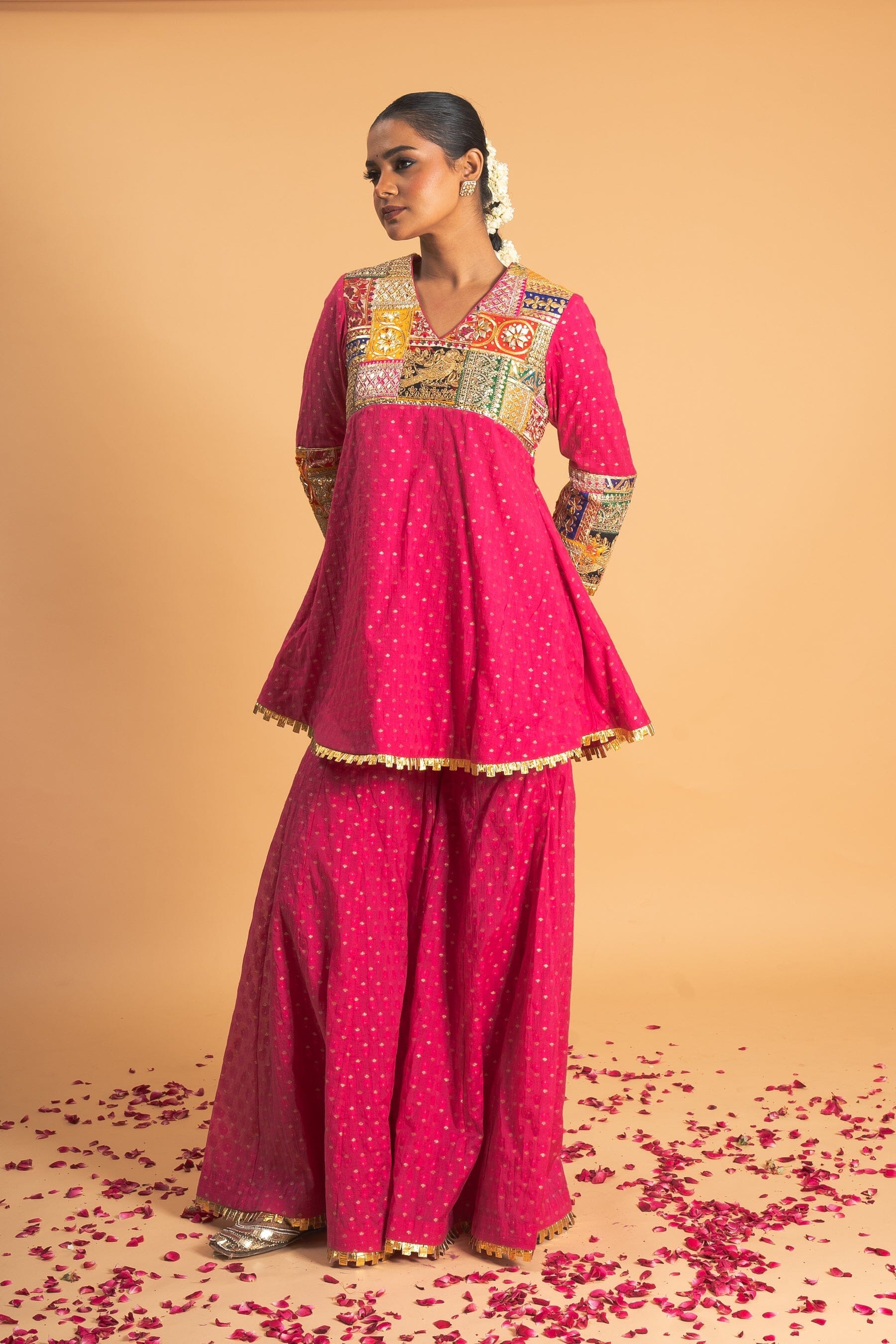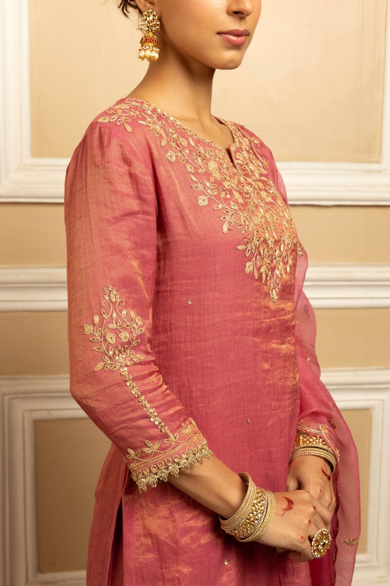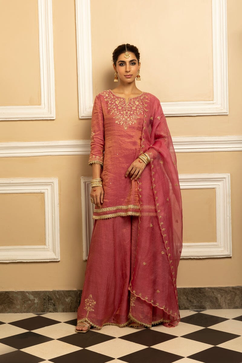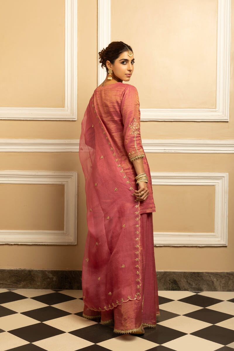 NOOR PINK TISSUE CHANDERI SHARARA SET