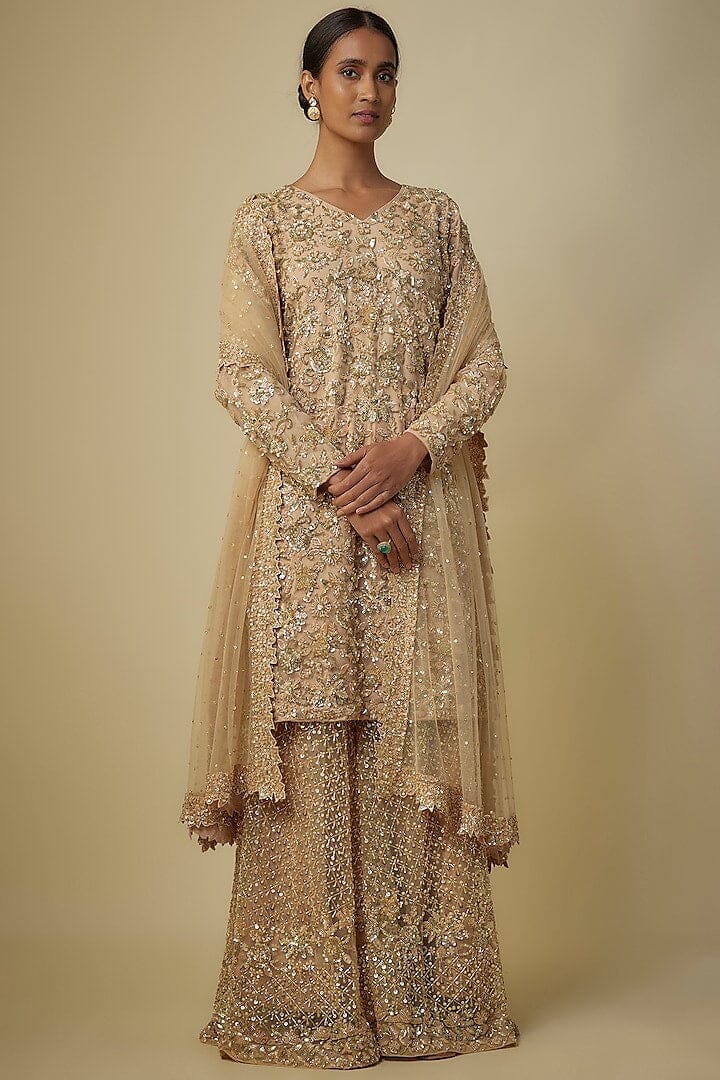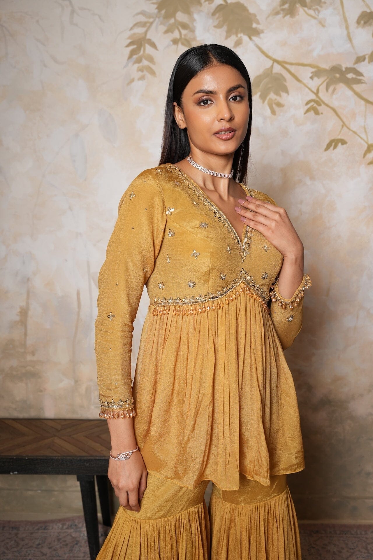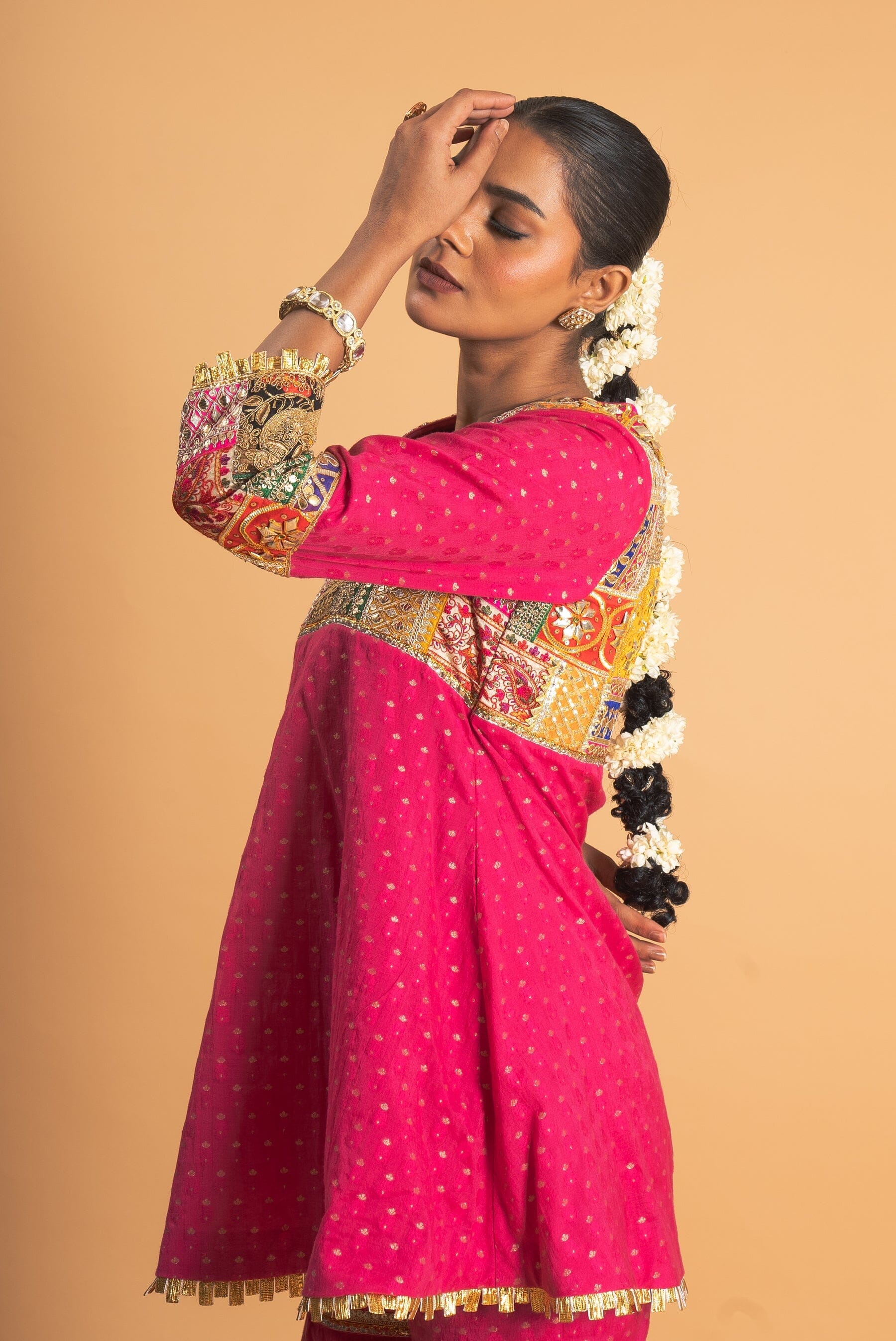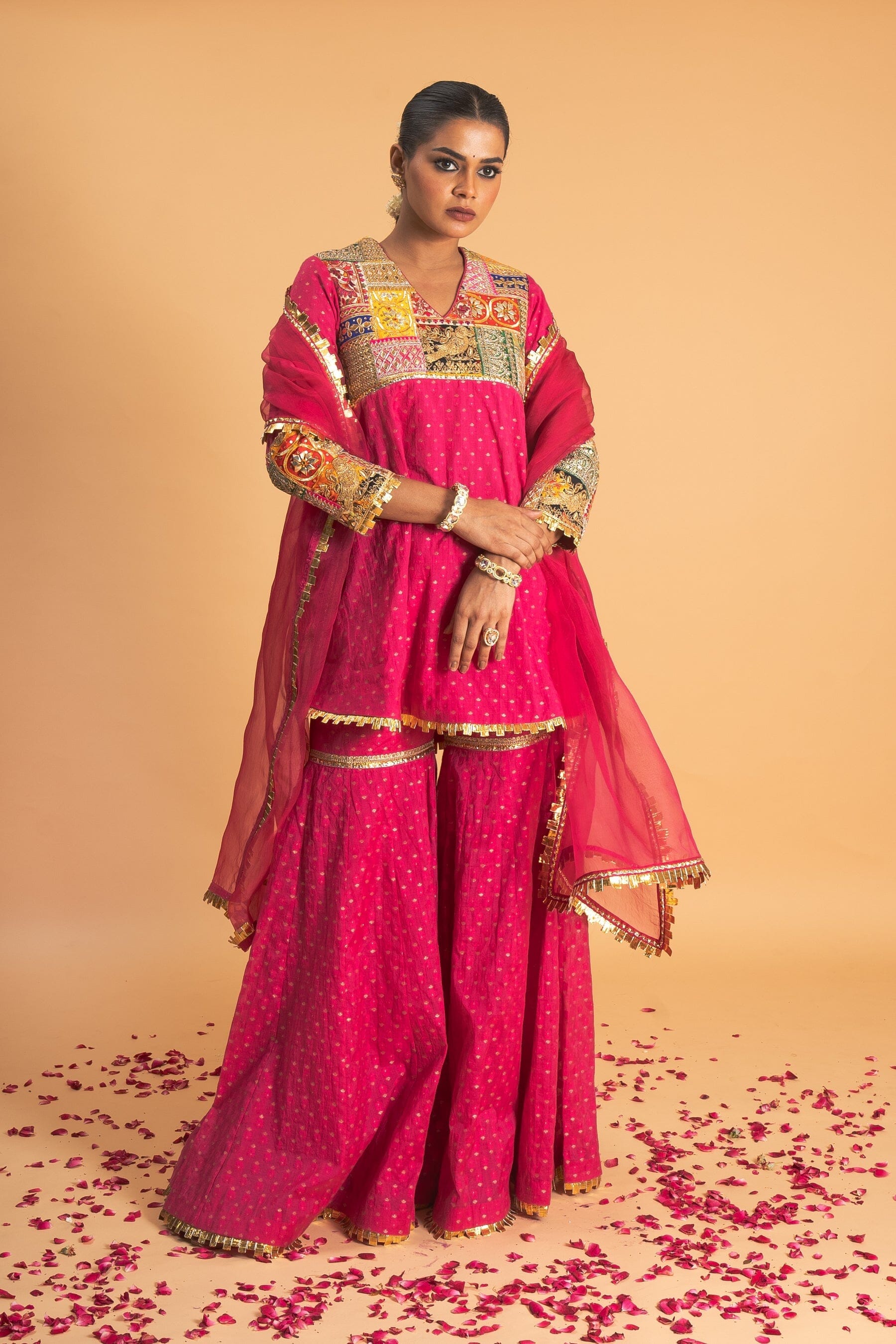 NOOR PINK TISSUE CHANDERI SHARARA SET