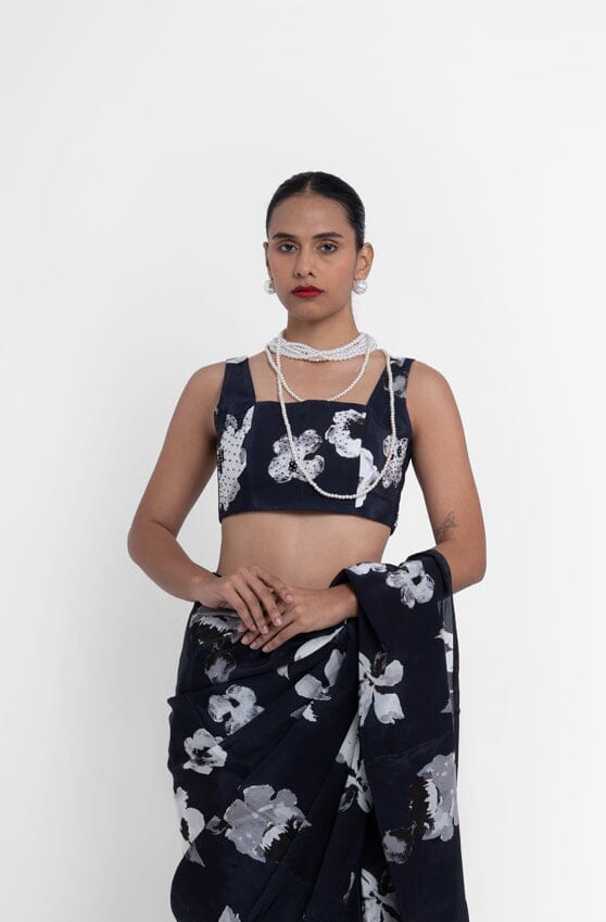We recommend pairing it with one of our black printed saree to complete the look.
