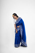 Chamba Blue pure katan banarasi silk saree made in jacquard weave has a shikargah border in gold zari.