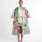 Cheri Upycyled Long Jacket is made with banarasi silk patches that are placed with hand and further enhanced with decorative gold laces and tassels. The jacket has pockets on each side. This can we worn with Indian and western ensembles.