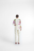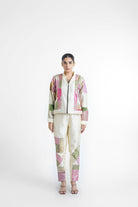Our Ivory Silk Pencil Pant is made with silk base which also has mashru silk fabrics patches on it in pastel.