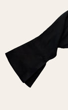 La camisa Lea de talla única en negro presenta una camisa de gran tamaño y fluida con botones de metal y un puño exagerado.