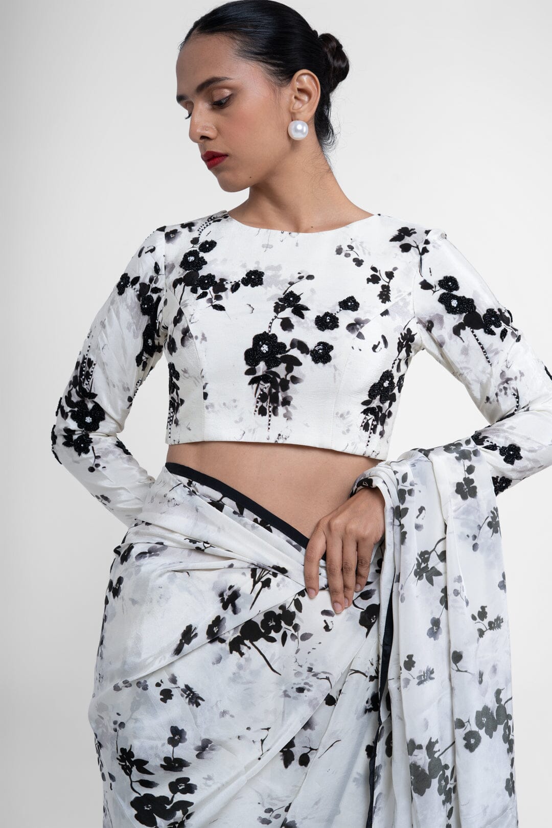We recommend pairing it with one of our white printed saree to complete the look.