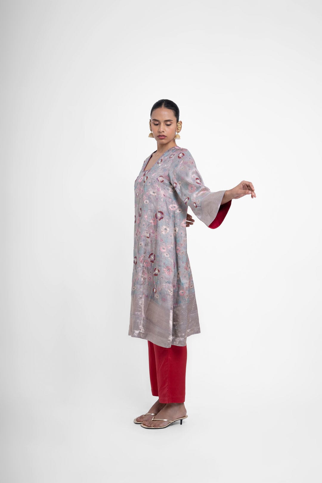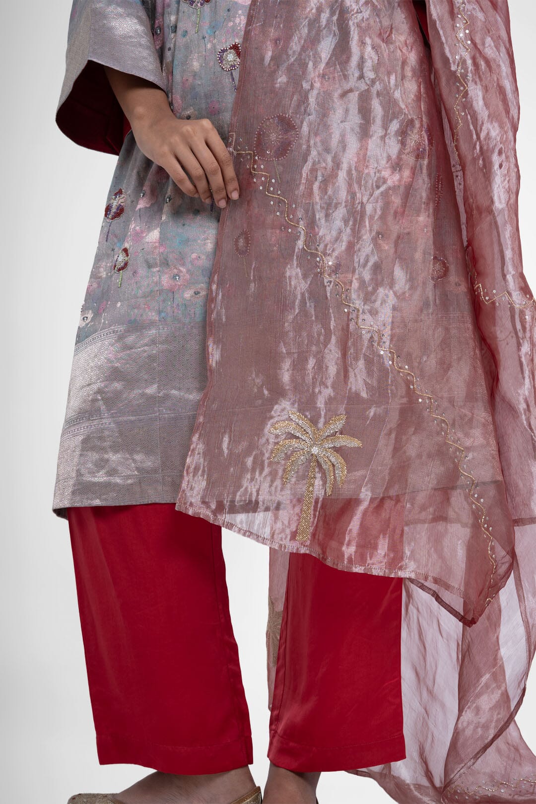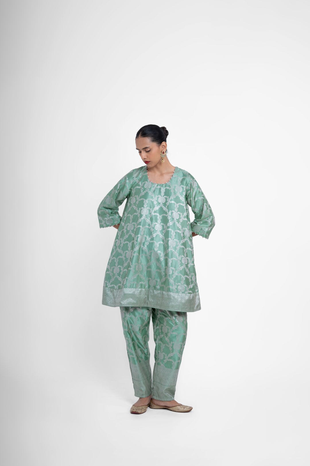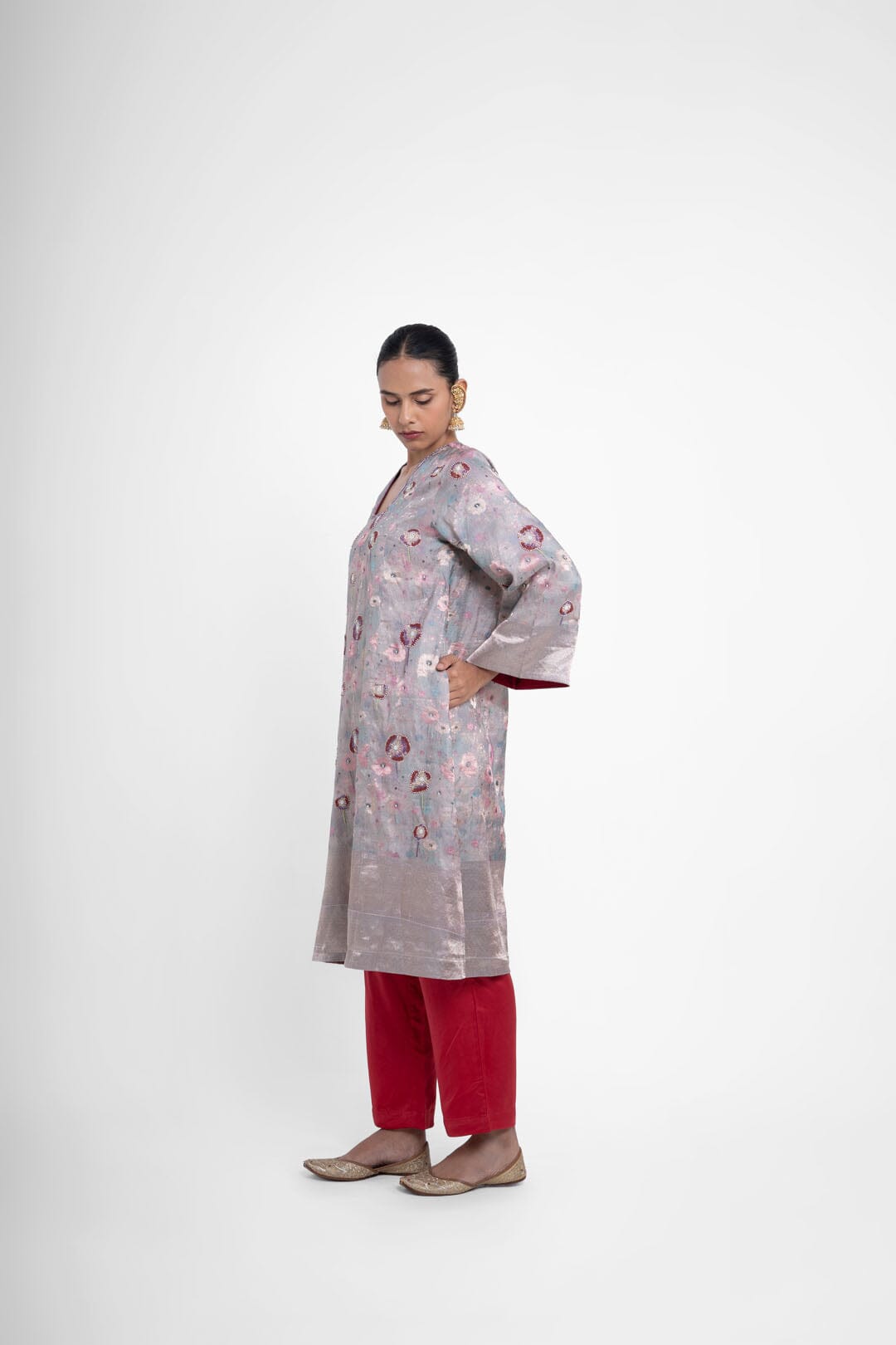 Shriya Singhi es una etiqueta de Varanasi. Todas sus piezas están creadas con Banarsi Silk, una fina variante de Silk originaria de la ciudad de Banaras. La elaboración de la seda Banarasi en Shriya Singhi es un hermoso viaje que se desarrolla a medida que los artesanos de Banaras crean la tela desde cero. Cada pieza encargada está meticulosamente hecha a mano creando una pieza única.